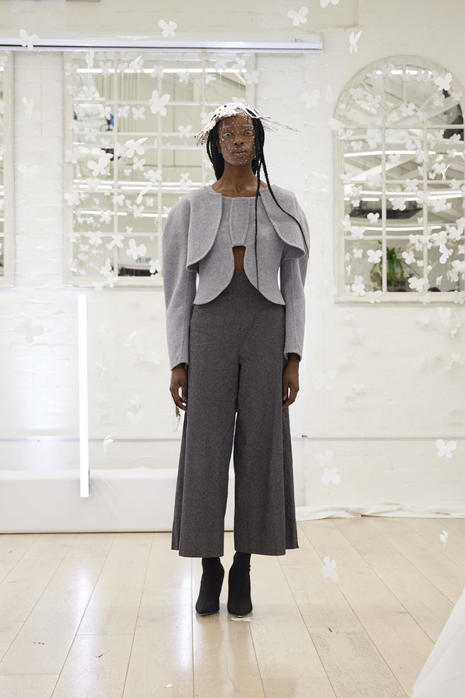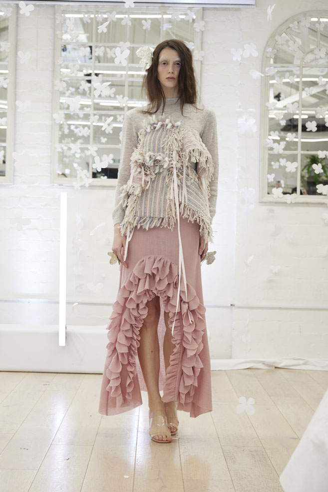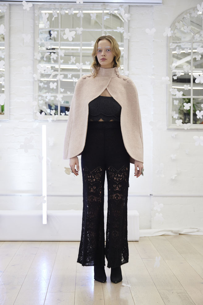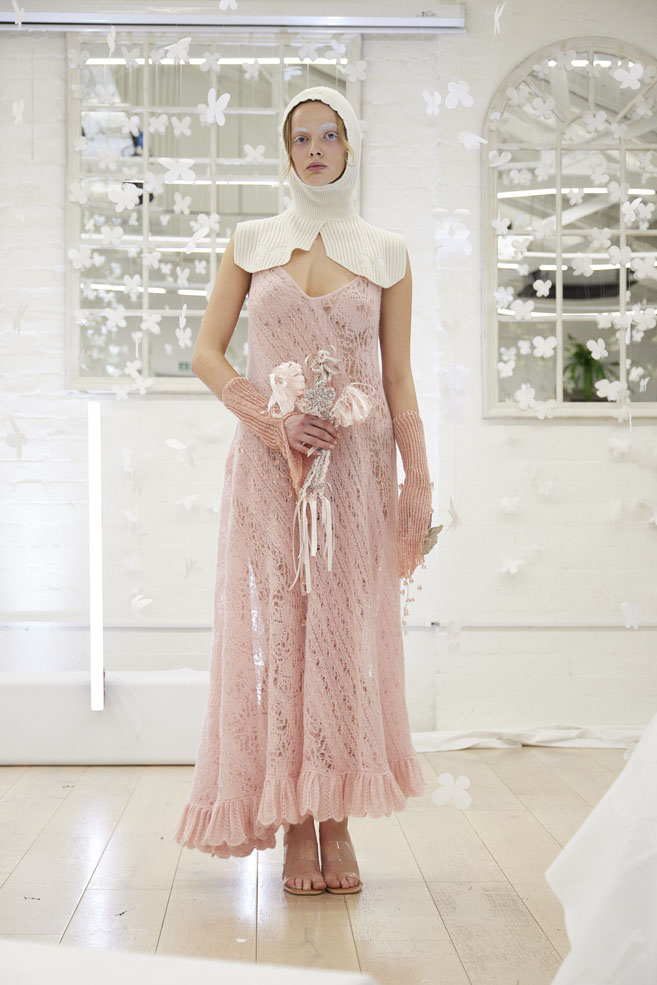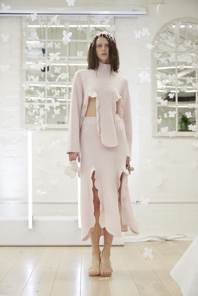 The AW23 series is full of soft puffy silhouettes, pleatings, and ruffles that gently wrap around the body. The designer hopes to convey a sense of security within the collection, seeing the person enveloped in softness. r.l.e continue to celebrate their most prominent muse within their AW23 collection, the authentic beauty of nature. The intricate details found in flowers, butterflies, and branches inspire the knitted elements of the design as well as various other fabrics.