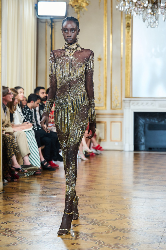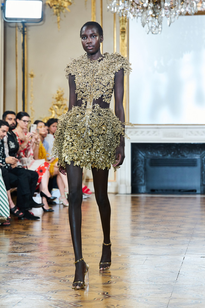 In this collection, two and three dimensional embroideries articulate the first flush of nature emerging on the surface of a body, and life that grows from it. Intricately embellished artworks articulate scenes from dense forests with ancient architectural remains and vegetation in modern day silhouettes. A fresh application for the brand, metallics add another dimension to our brand’s signature hand craft. True to the values of ‘Haute Couture’, pieces feature fabrics that are handwoven in remote locations in India, embroidered with hand for over 10,000 human hours and sewn to perfection for clothing that is featherweight despite its convoluted surfaces.