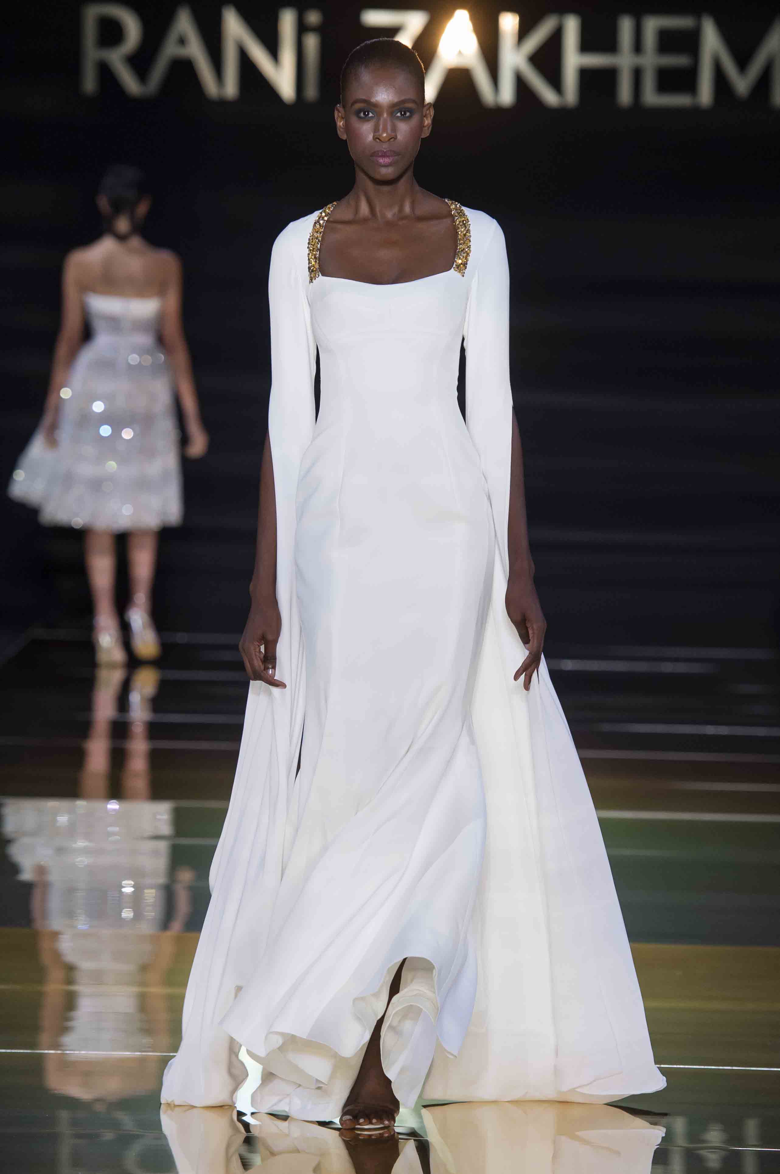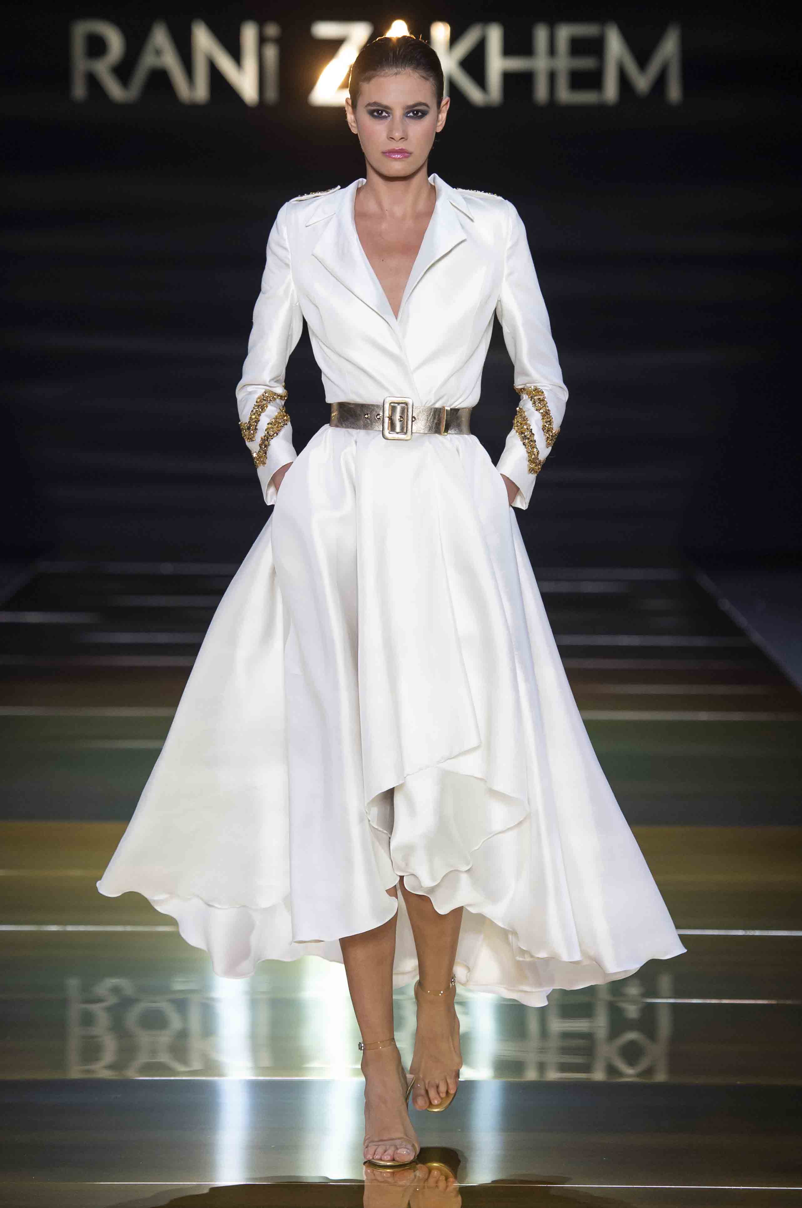 Subtle references from Yves Saint Laurent, Marc Bohan and Azzedine Alaïa punctuate the couture vocabulary of Rani Zakhem, between a Saharienne detail, a draped moulage, the powerful minimalism of a white dress enhanced by a slight ornament, all brilliantly inserted in a personal interpretation!