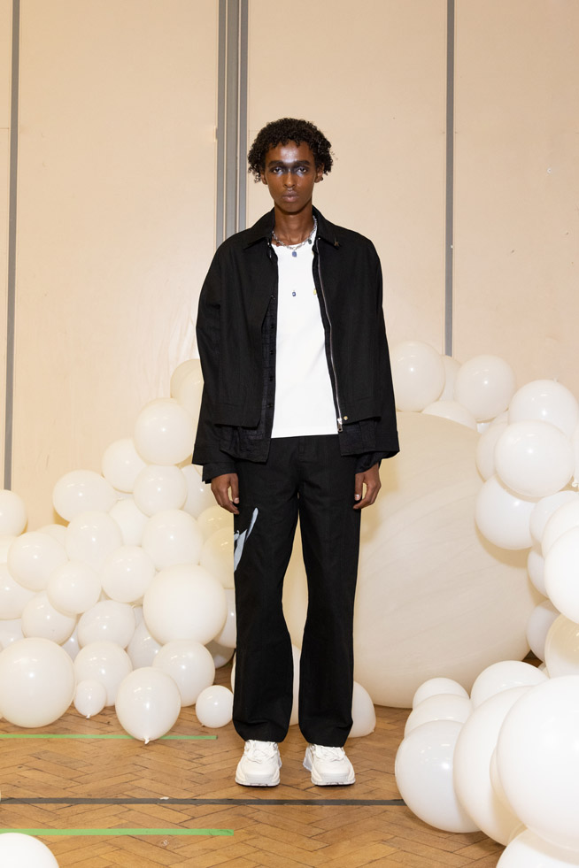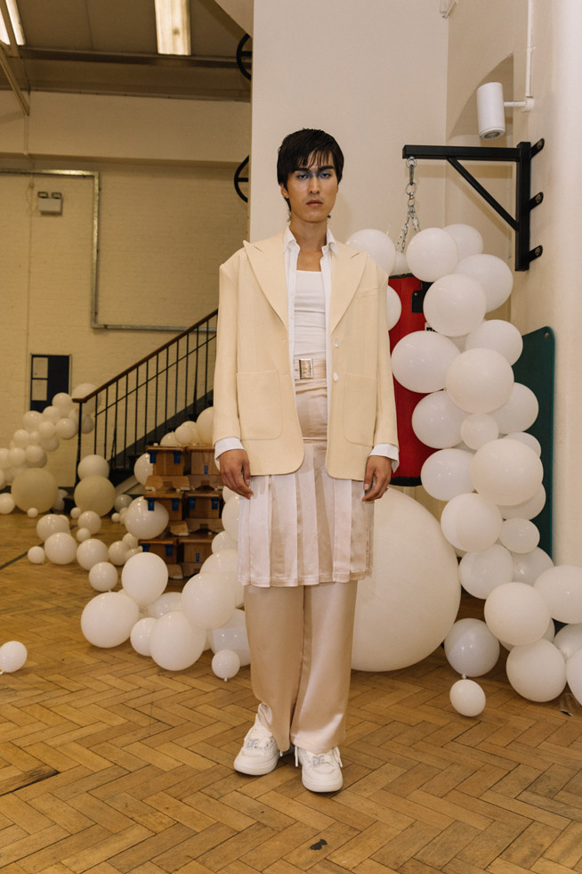 m̄enom̄eno collaborates with Ray Chu due to their shared values, choosing environmentally friendly materials in both fashion and skincare. Their collaboration during fashion week incorporates the use of recycled fabrics, aiming to develop in the fashion and skincare industries while fulfilling their responsibility to protect the Earth.