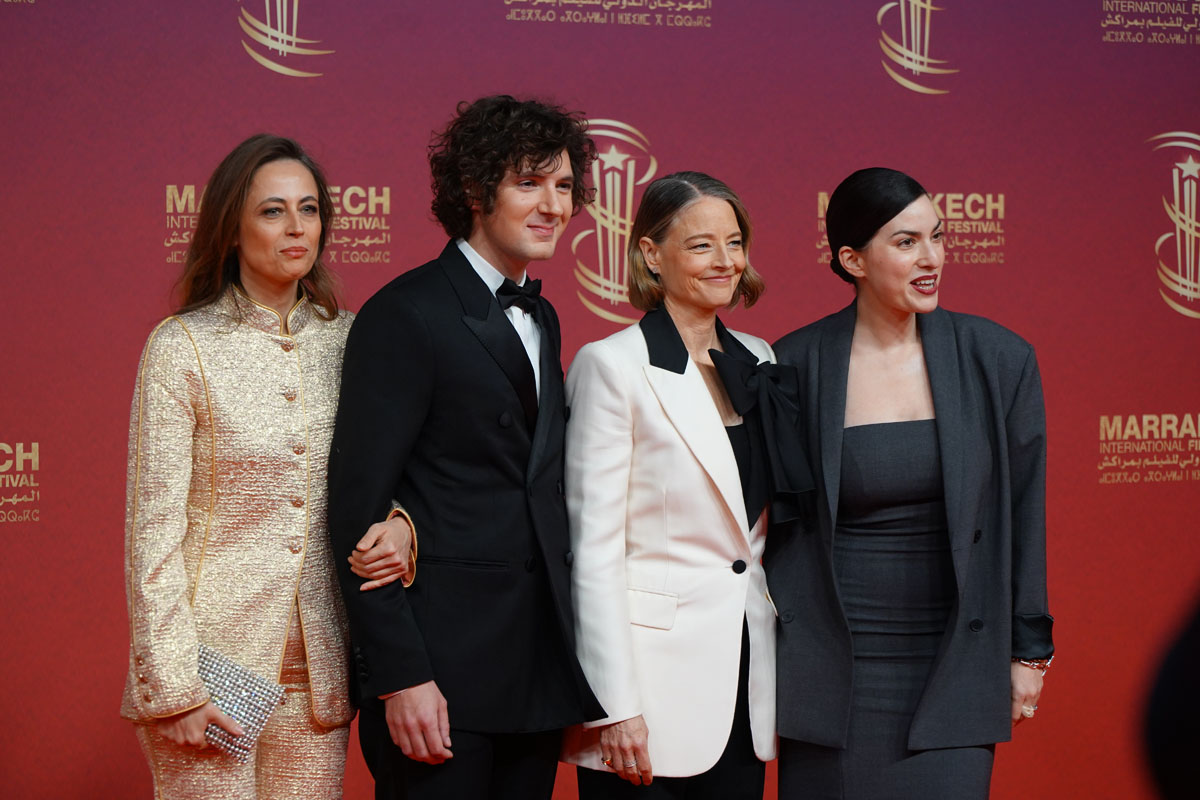 Vincent Lacoste, Virginie Efira, Rebecca Zlotowski, Jodie Foster and Anne Berest attend the red carpet during day Two of the 22nd Marrakech International Film Festival on November 29, 2025 in Marrakech, Morocco. (Photo by Shooting.ma)