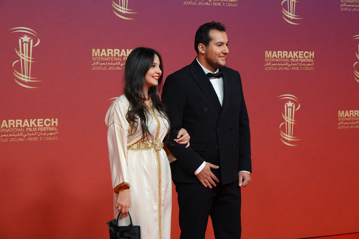 Faical Tadlaoui (R) and a guest attend the red carpet during day Two of the 22nd Marrakech International Film Festival on November 29, 2025 in Marrakech, Morocco. (Photo by Shooting.ma)