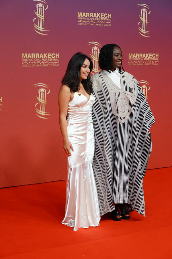 Erige Sehiri and Aïssa Maïga attend the red carpet during day Two of the 22nd Marrakech International Film Festival on November 29, 2025 in Marrakech, Morocco. (Photo by Shooting.ma)