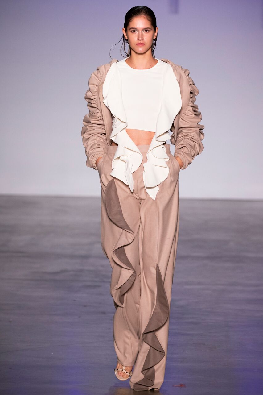 Inspired by organic forms and the texture of fungi, Ardour boasts a series of dynamic, oversized outfits. They make use of fabric manipulation and oversized silhouettes. This collection offers a clean colour palette with vibrant floral prints bringing each outfit to life. Ardour is comprised of masculine shirts that are constructed with feminine elements. Upon wearing, a woman becomes strong and confident, yet beautiful and delicate.