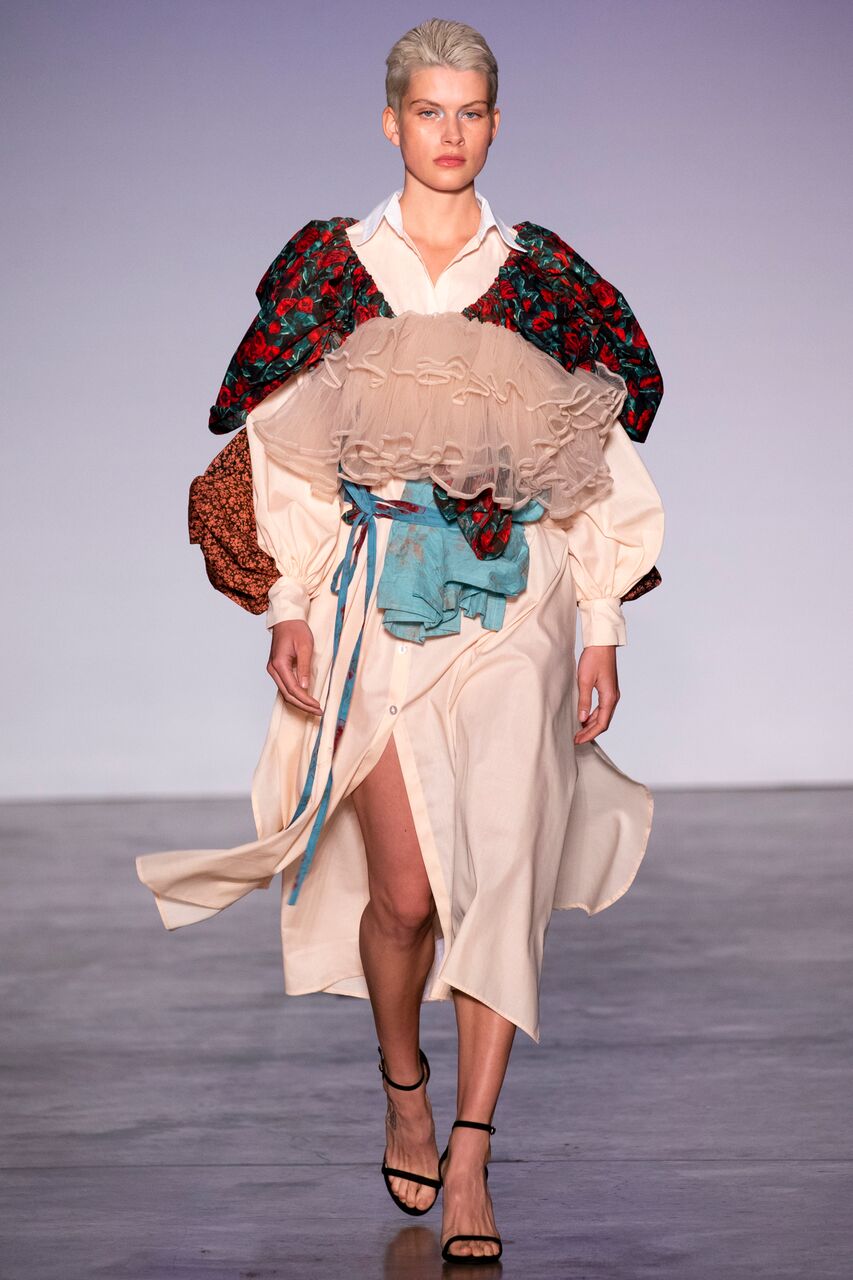 So much to think about. So much to feel for. It’s easy to get swept up in the magic Daisy Fields. A collection that incorporates random stone washed, bleached and dyed denim. A 1950s print and transparent, asymmetric layers of silk, organza and organdie.