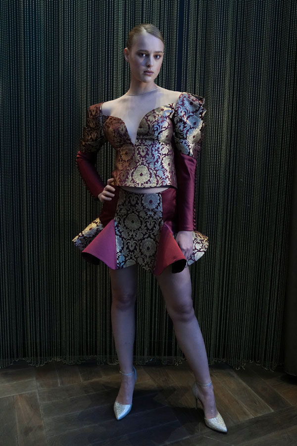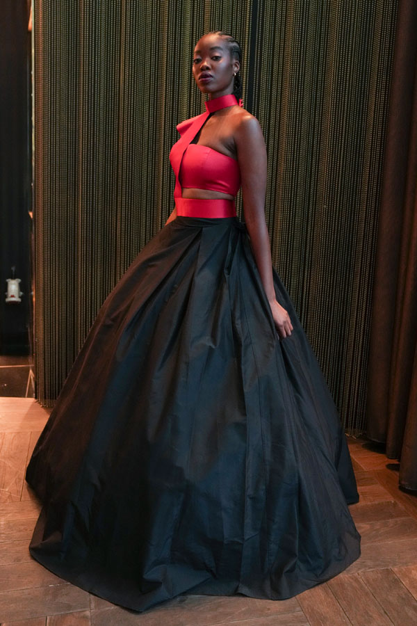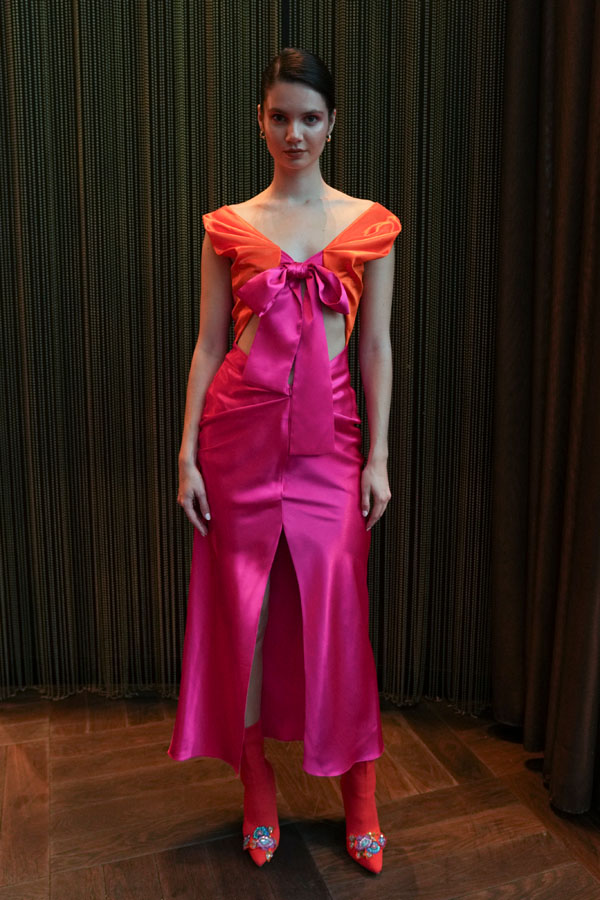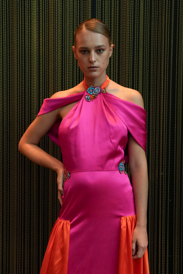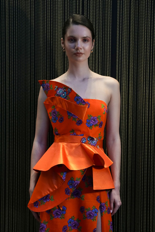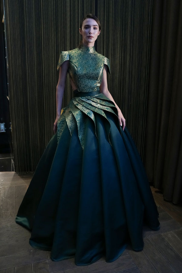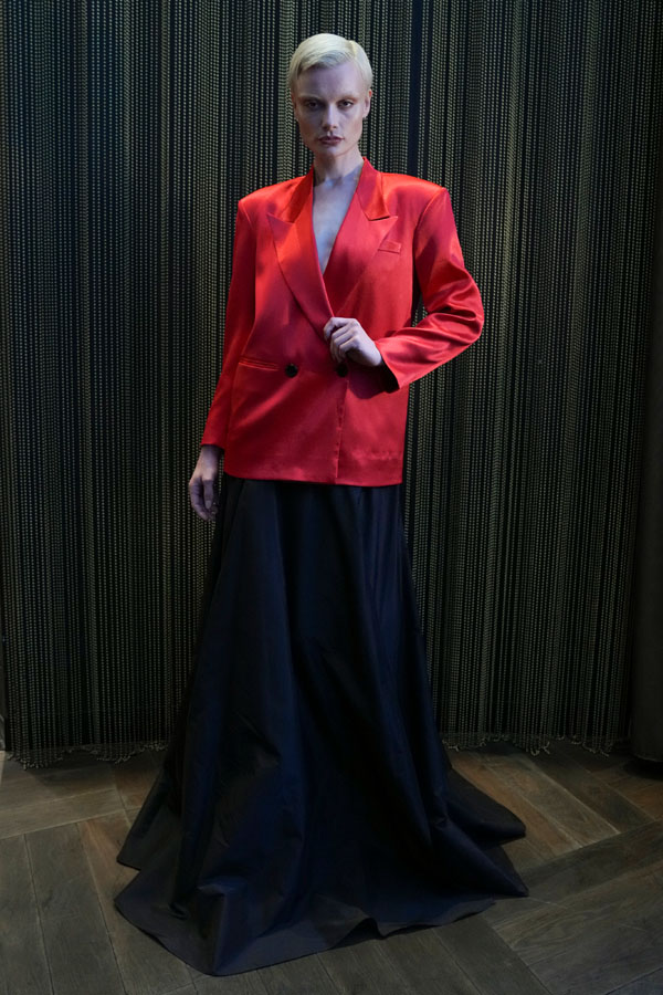 The SS25 collection, also titled Cohesion, draws inspiration from Shrestha’s personal experiences and the rich cultural heritage of Nepal. The collection pays tribute to the Nepalese people and the country’s exquisite handcrafting traditions, reflecting the harmonious blend of ancient practices and modern fashion.