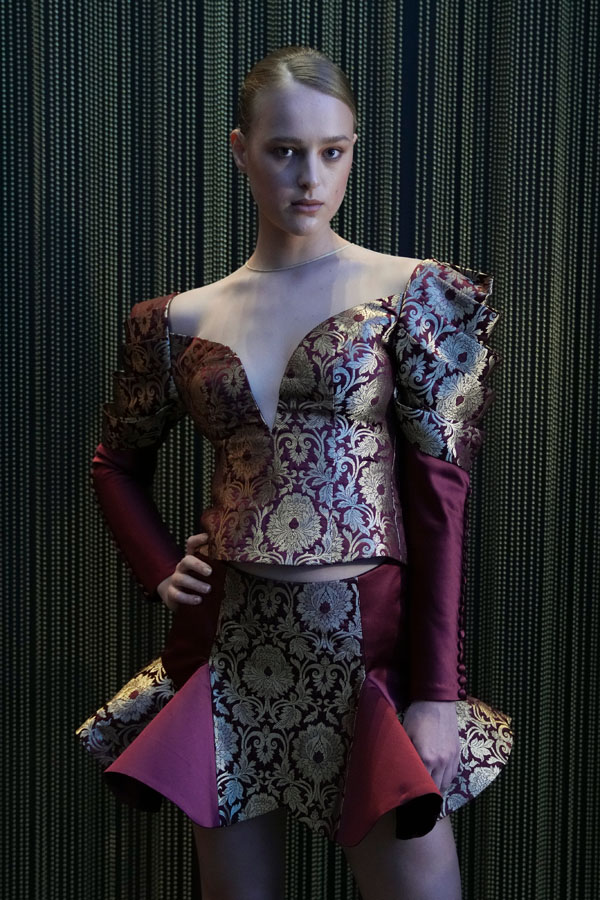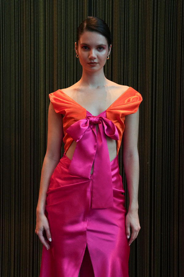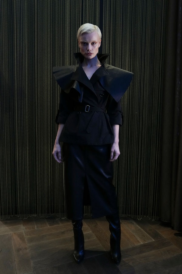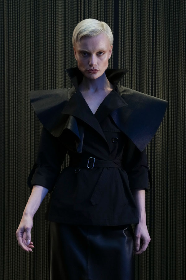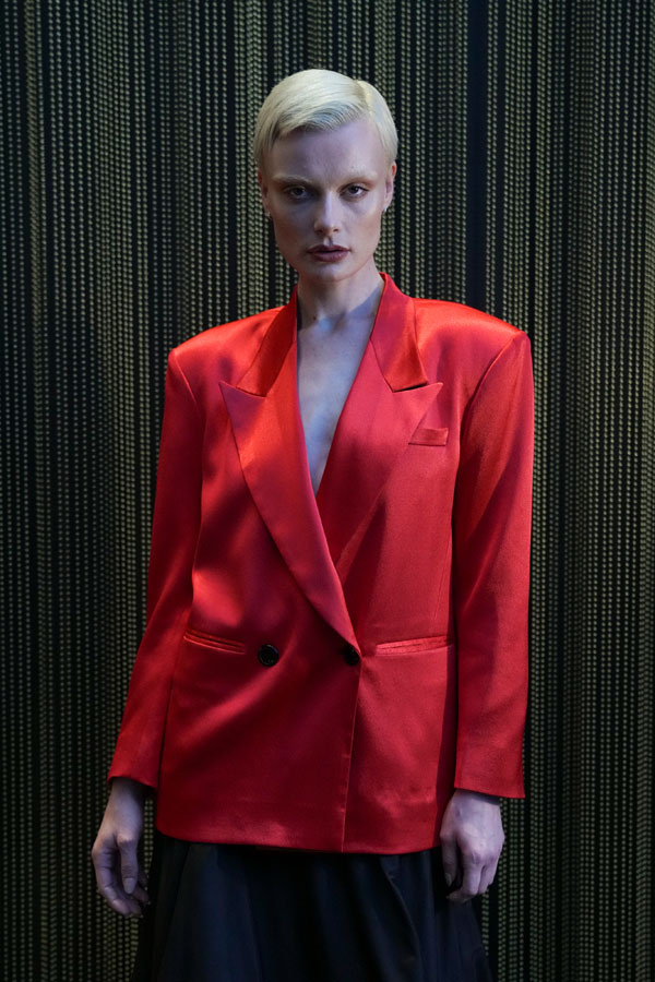 The SS25 collection, also titled Cohesion, draws inspiration from Shrestha’s personal experiences and the rich cultural heritage of Nepal. The collection pays tribute to the Nepalese people and the country’s exquisite handcrafting traditions, reflecting the harmonious blend of ancient practices and modern fashion.