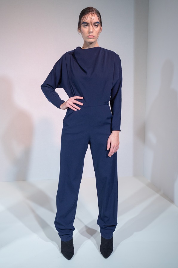 All Riona Treacy pieces are designed and handmade in London, while all the fabrics are ethically sourced within the UK and Ireland. She works closely with her suppliers, and proudly supports the British and Irish manufacturing industries. Her collections include women’s ready-to-wear, accessories, and bespoke commission pieces for private clients. Past collections such as ‘Lounge Disco’ and ‘The Island’ take on an asymmetric style. Her passion is to create designs for confident women who can make a bold statement with their image without the need to seek attention. Riona continuously subverts conventions with the exploration of alternative necklines and draping to create fascinating silhouettes. Riona’s extensive creativity can be highlighted in the versatility between her collections. The minimalist elegance of ‘Lounge Disco’ juxtaposed against the gothic eeriness of ‘Boy meets dress’ shows a deep investigation of geometric shapes and asymmetric lines in two completely different depths.