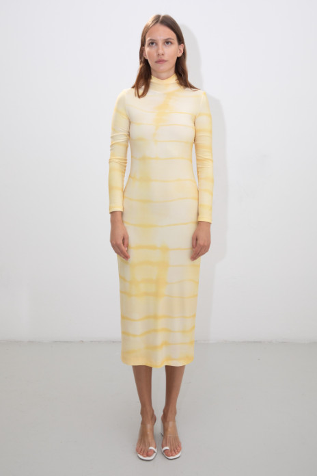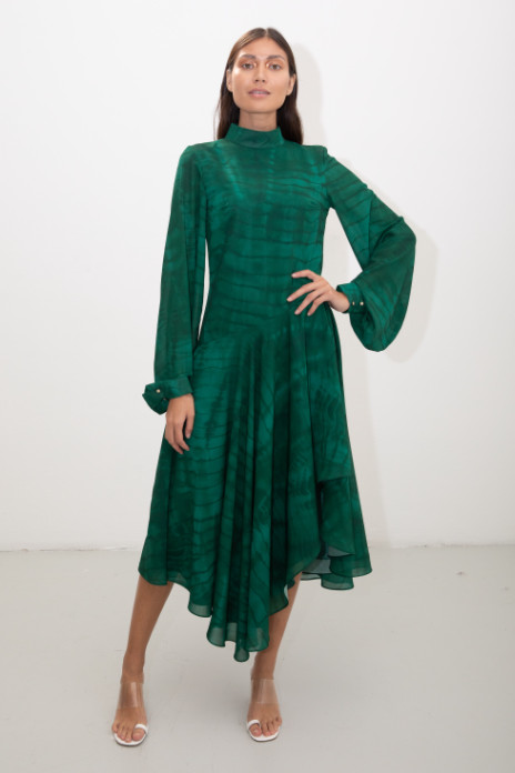 For SS20, Summer evokes memories of glorious summers past. This season Riona Treacy’s collection is inspired by childhood summers, of endless days and boundless daydreams. Riona has pieced together fragments of her childhood memories: the cool dampness of a verdant Irish summer, sewing dresses for the tooth fairy in her granny’s rockery garden and fashioning tiny hand-written business cards from yellow post-it notes. These childish misspelt notes read ‘Riona Treacy Fashion Designer’ – one of which is framed in her studio today. The colour palette for SS20 is a combination of fresh blend bright yellows, powder blue, greens and neutral tones while the soft subtle prints conjure up hazy summer days and leafy greens, taken from hand-dyed fabrics using shibori, Riona Treacy’s signature style.