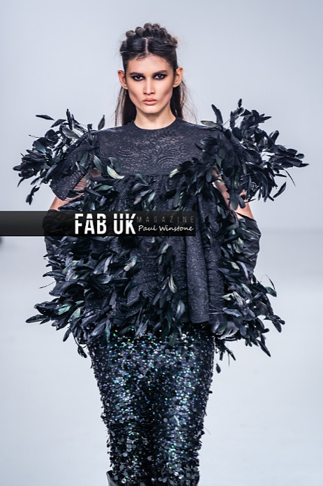 A resurgence of scattered sequins, delicate lace detailing, and feather goodness; precise and polished. The collection evolves voluminous sleeves, Victorian ruffles, gathered hemlines and refined pleats, featured in blended and textured fabrics. Further accentuated with bold yet intricate metallic threads and accents, the collection amalgamates sophistication and minimalism with renewed edge and appeal. Structured and free-flowing silhouettes are paired together and brushed with signature cut and sew techniques, surface texturing and applique work, redefining winter dressing.