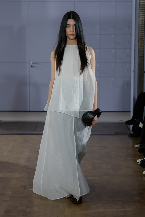 The essence of RUOHAN’s Spring/Summer 2025 captures absence as eloquently as presence. It is an ode to the unspoken, a visual exploration of harmony and dissonance, where each garment becomes a note, every movement a phrase, and every silence a reflective pause. The collection is a meditation on contrast and coexistence, exploring the relationships between objects, structures, people, and emotions. It balances repetition and opposition, improvisation against classical formality, and the poetic tension between symmetry and asymmetry. Straight lines meet curves, and simplicity converses with complexity, creating a narrative that transcends fashion—an interplay of interactions.