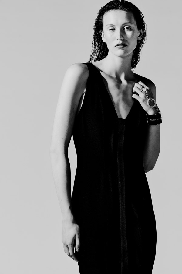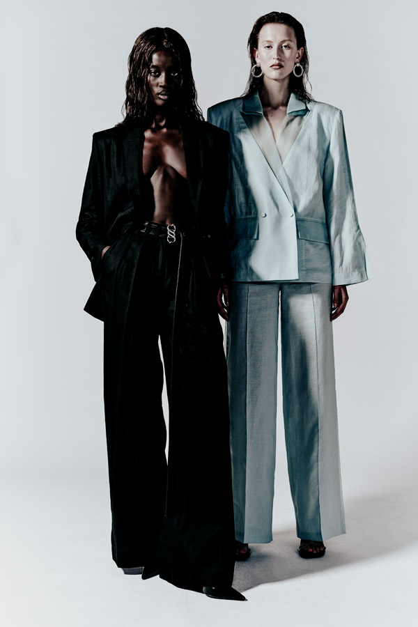 On the other, Sagio’s clever take on trompe-l’oeil techniques, which he uses on dresses and separates alike, highlights his humorous approach toward fashion, making his clothes uplifting and highly pleasurable. Working mainly with linen, silk and cotton, the Budapest-based designer imagines a directional collection, which manages to be edgy and refined at the same time. His exquisite color palette, which mostly includes black, light blue and white -as well as key accents of gray, aqua and terracotta- feels timeless and sophisticated, while being truly relevant.