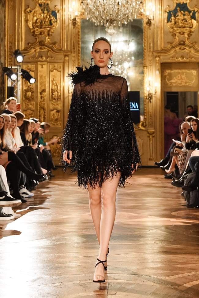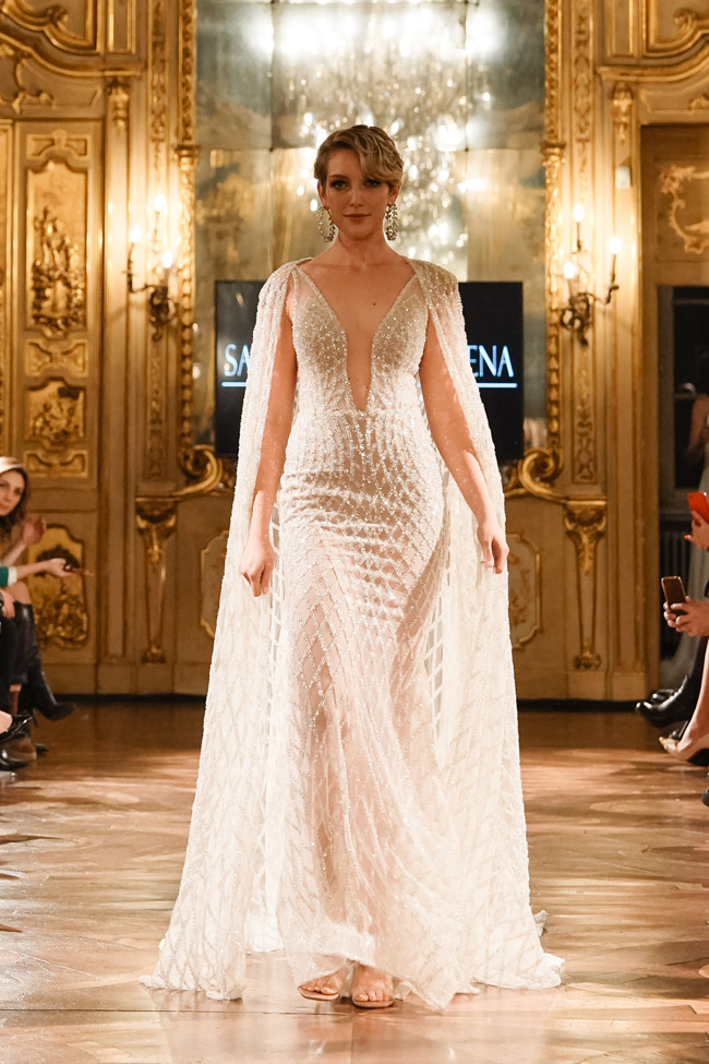 Celebrity guests including Le Fate, Arina Bernardini, Elena Benito, Elle Magazine, Angelina Kali, and Prissy Gomes were treated to a sumptuous setting that perfectly complemented the elegance and sophistication of Pappacena’s designs. The atmosphere was one of excitement and anticipation, as the lights dimmed and the music began, signaling the start of the show.
