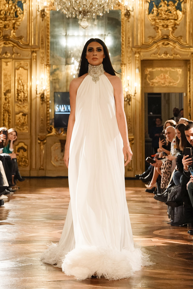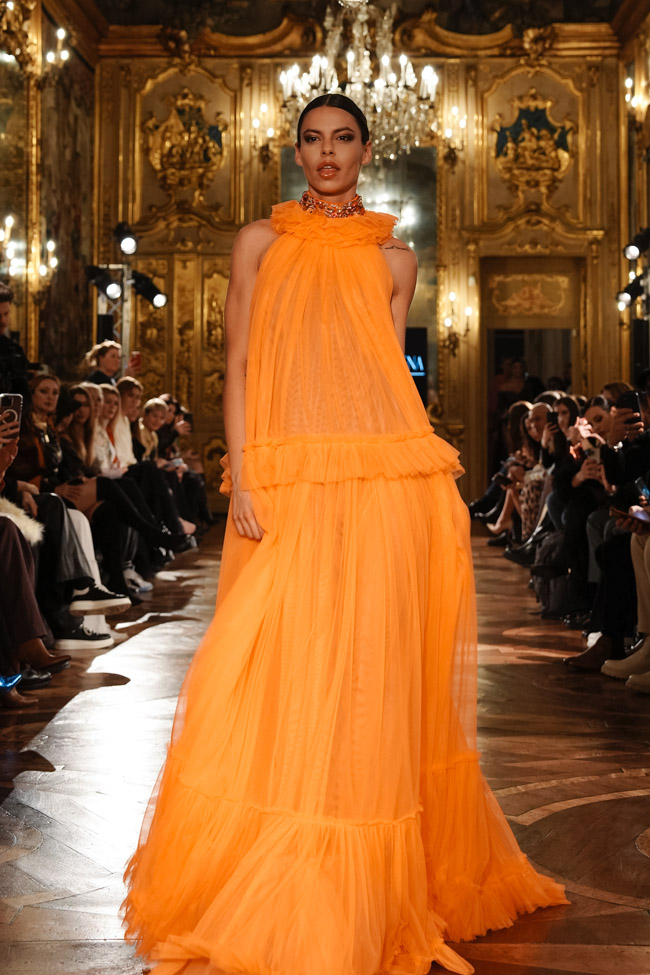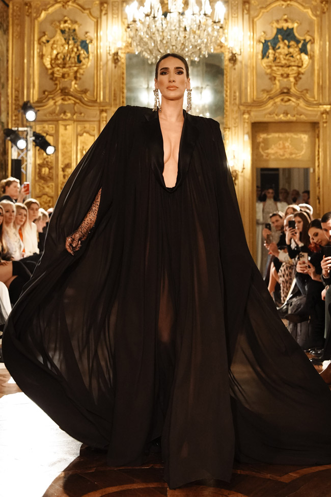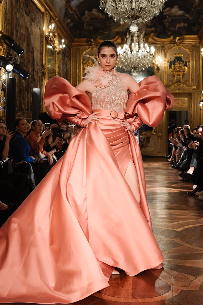 Fashion enthusiasts and industry professionals alike gathered at Palazzo Clerici, via Clerici 5, 20121 Milano on Friday, February 24th, 2023, to witness the stunning designs of Salvatore Pappacena, a rising star in the world of Campania couture. Pappacena’s journey to becoming a sought-after couturier began at a young age as he sewed clothes with scraps of fabric left over from his grandmother’s dresses. He later went on to study at the art school and fashion academy, followed by collaborations with renowned fashion houses, all of which have contributed to his well-deserved reputation.