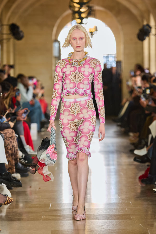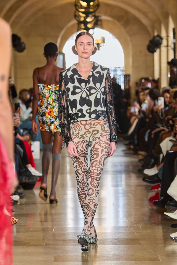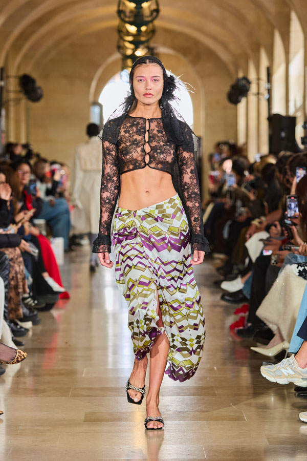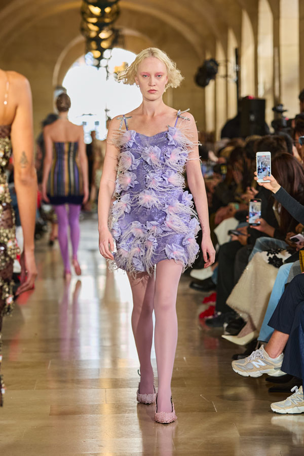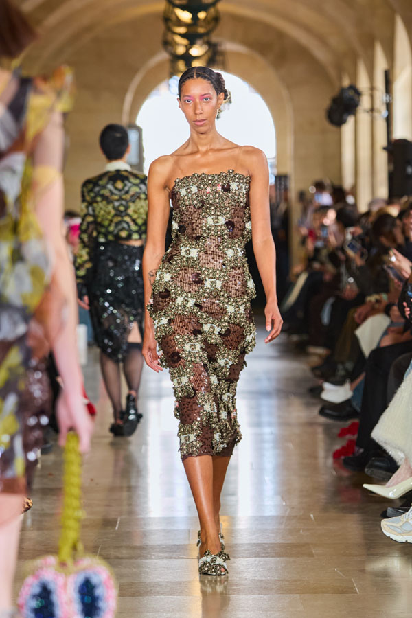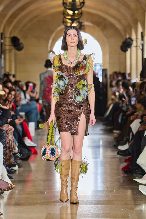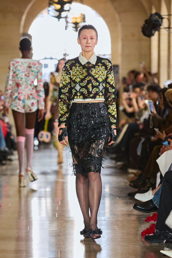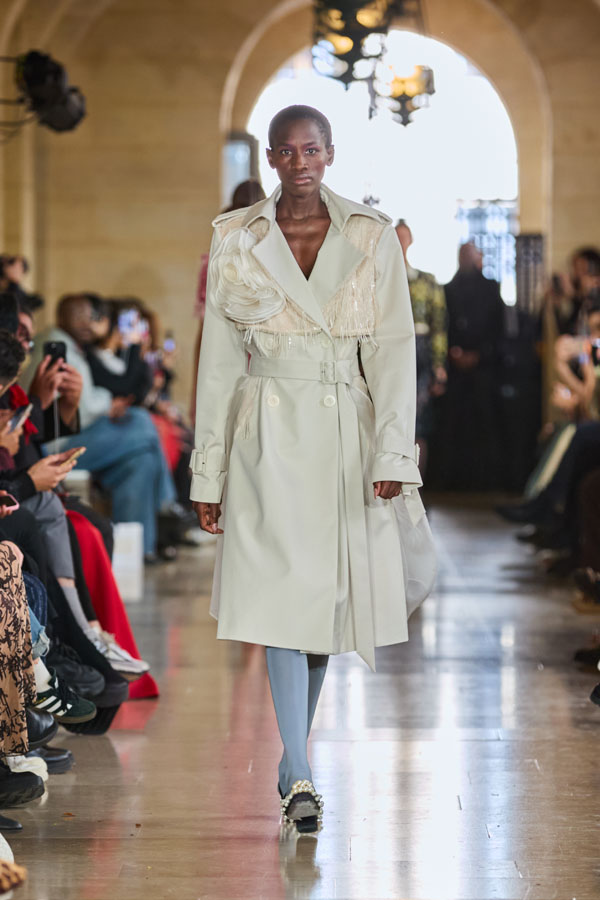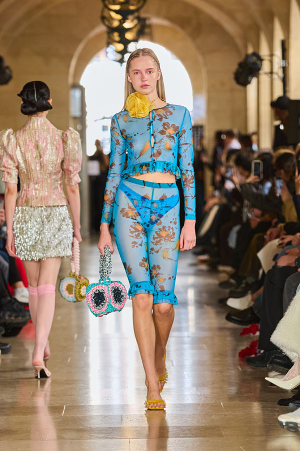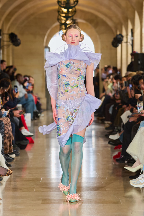 Throughout the collection, bows unfurl, florals bloom in sculpted relief, and ruffles ripple with dramatic grace, and sheer black and white weaves tension with romance. Once symbols of girlhood, these details now embody independence and conviction, each bow a quiet coronation, each flower a testament to resilience. The interplay of transparency and darkness reveals a new kind of softness, one that whispers rather than declares, yet holds undeniable power. SHUTING QIU redefines romance as courage, transforming delicacy into armor for the modern woman.