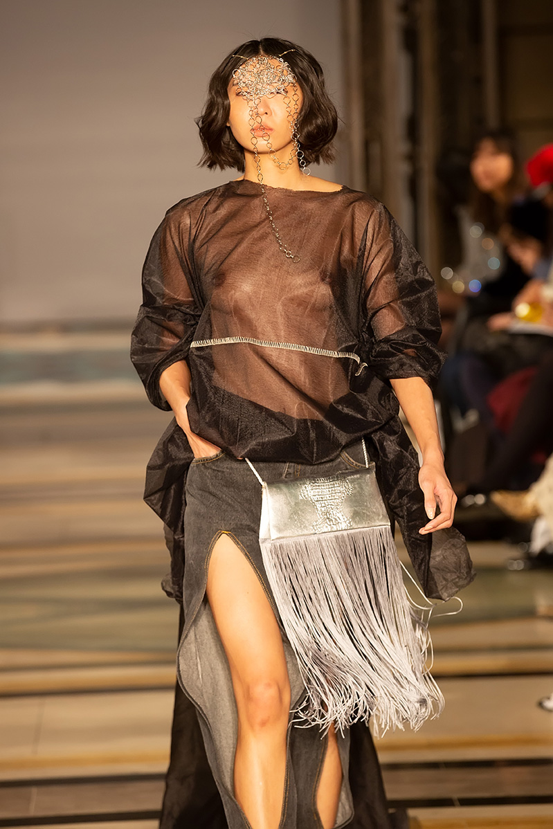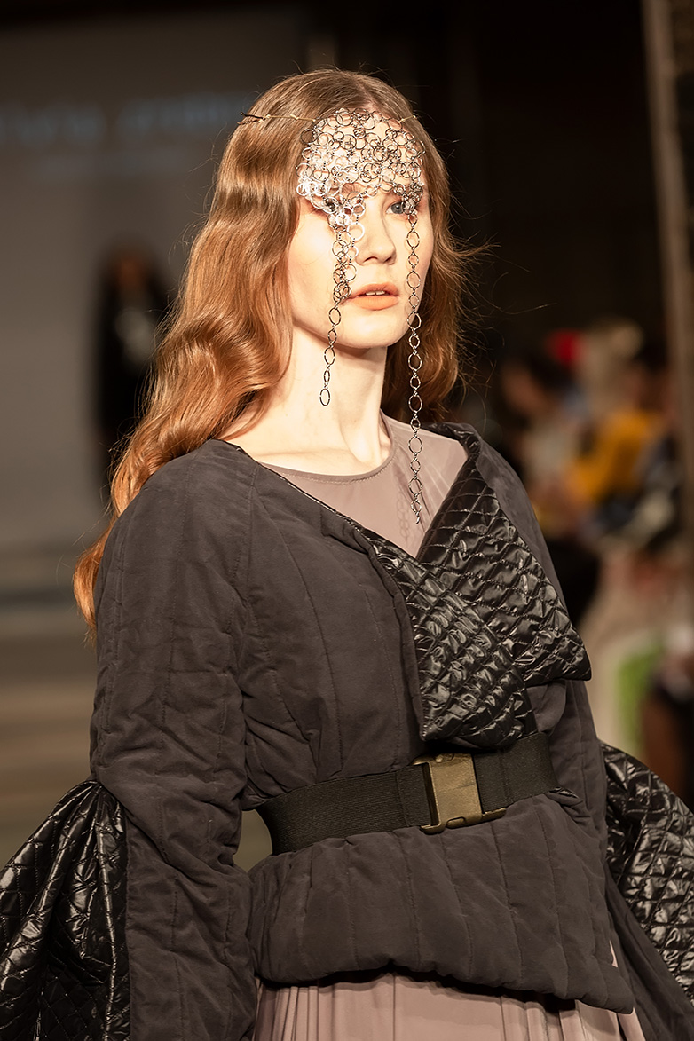 Silvia Zrebná: Silvia Zrebná is an emerging fashion designer who successfully graduated from Fashion studio at the Academy of Fine Arts and Design in Bratislava. In her collection, she presents her own RTW pieces, showing a variety of fabrics, precise attention to detail and for Silvia typical dark colour palette. Contrasting to her own line are her sustainable collections featuring upcycled pieces in bold colours. She draws inspiration from everyday life, working and creating spontaneously, being guided by her intuition. She offers unisex pieces with a belief that everyone has a freedom to choose their own identity and fashion that goes with it.