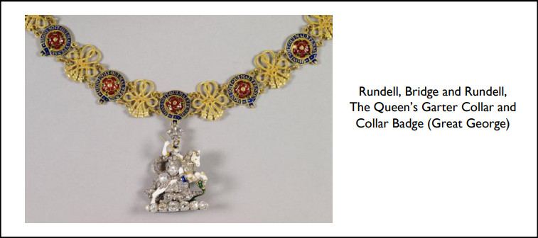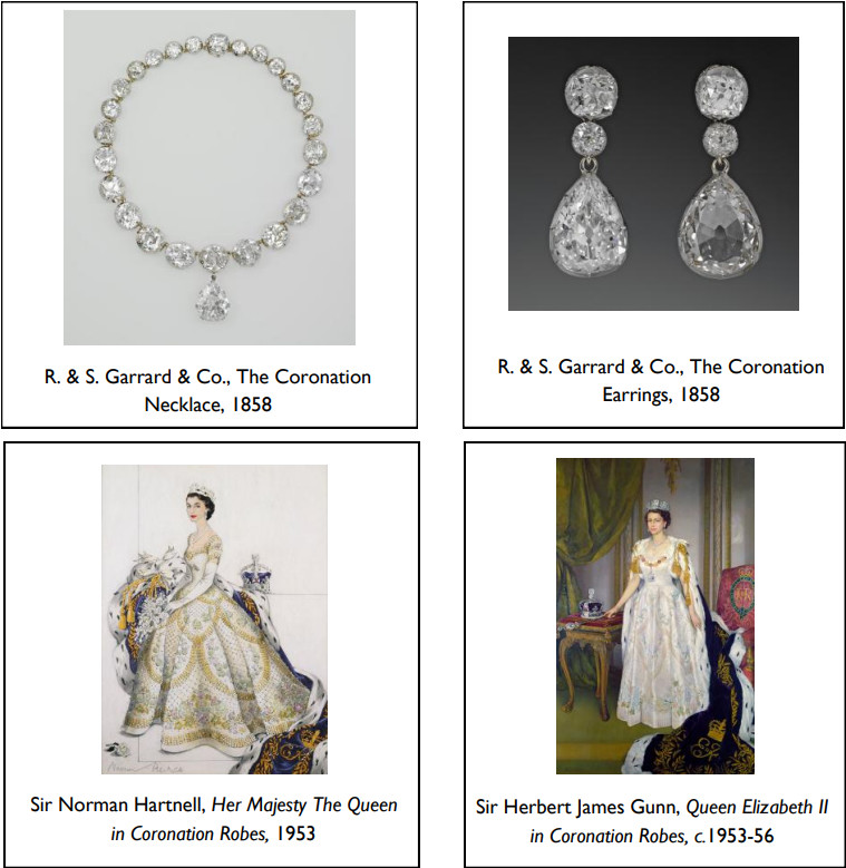 A highlight of the display will be a 2.5-metre-tall portrait of The Queen by Sir Herbert James Gunn. Commissioned to commemorate the Coronation, it continues a long tradition of formal portraiture of new monarchs in their Coronation clothes, often referred to as ‘State Portraits’. Her Majesty is depicted in the Throne Room at Buckingham Palace wearing the Coronation Dress, Robe of Estate, Coronation Necklace and Earrings, Diamond Diadem and the Collar and Badge of the Most Noble Order of the Garter. This badge, known as the Marlborough George, is also part of the display. Originally made for George IV in 1828, the gold figure of St. George on a rearing horse slaying the dragon, the emblem of the Order, is mounted in enamel and diamonds. The Collar and Badge are worn by The Queen for the annual Garter Day service at St. George’s Chapel, Windsor Castle and for the State Opening of Parliament.