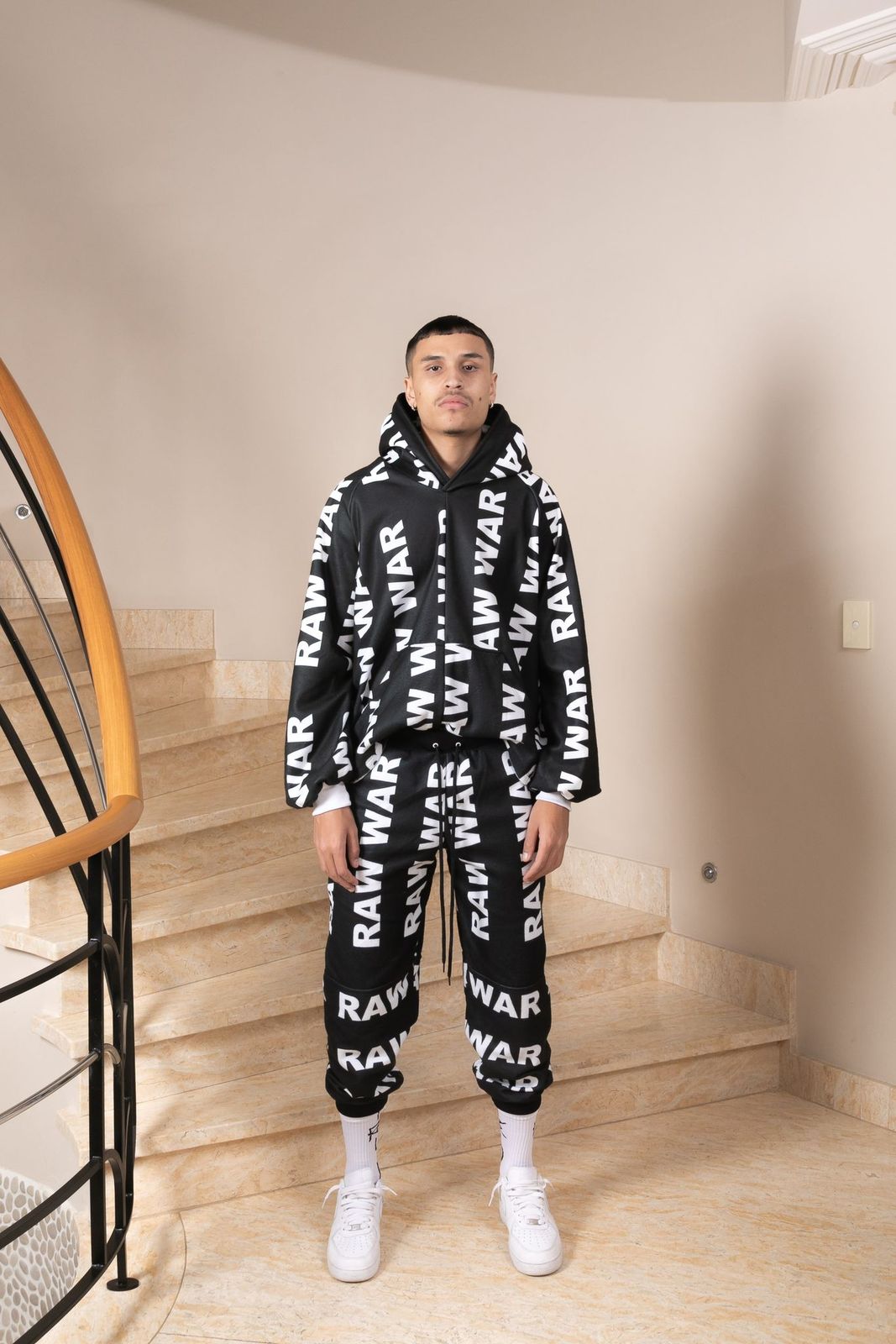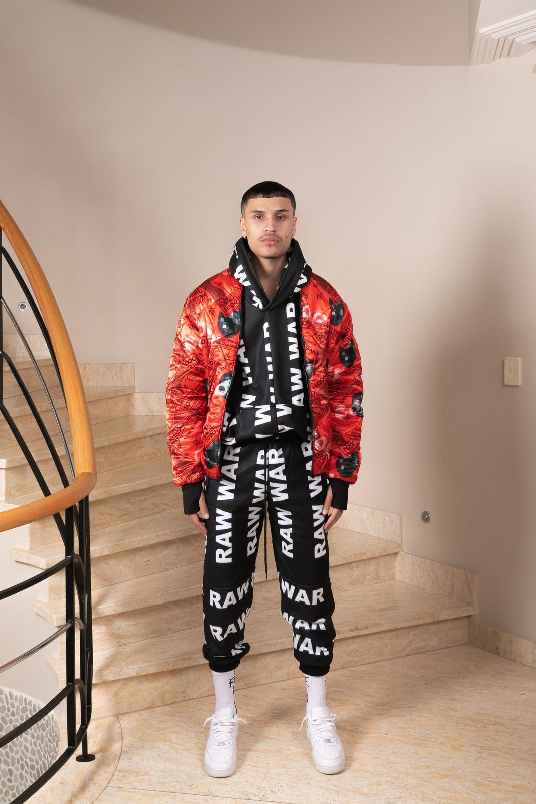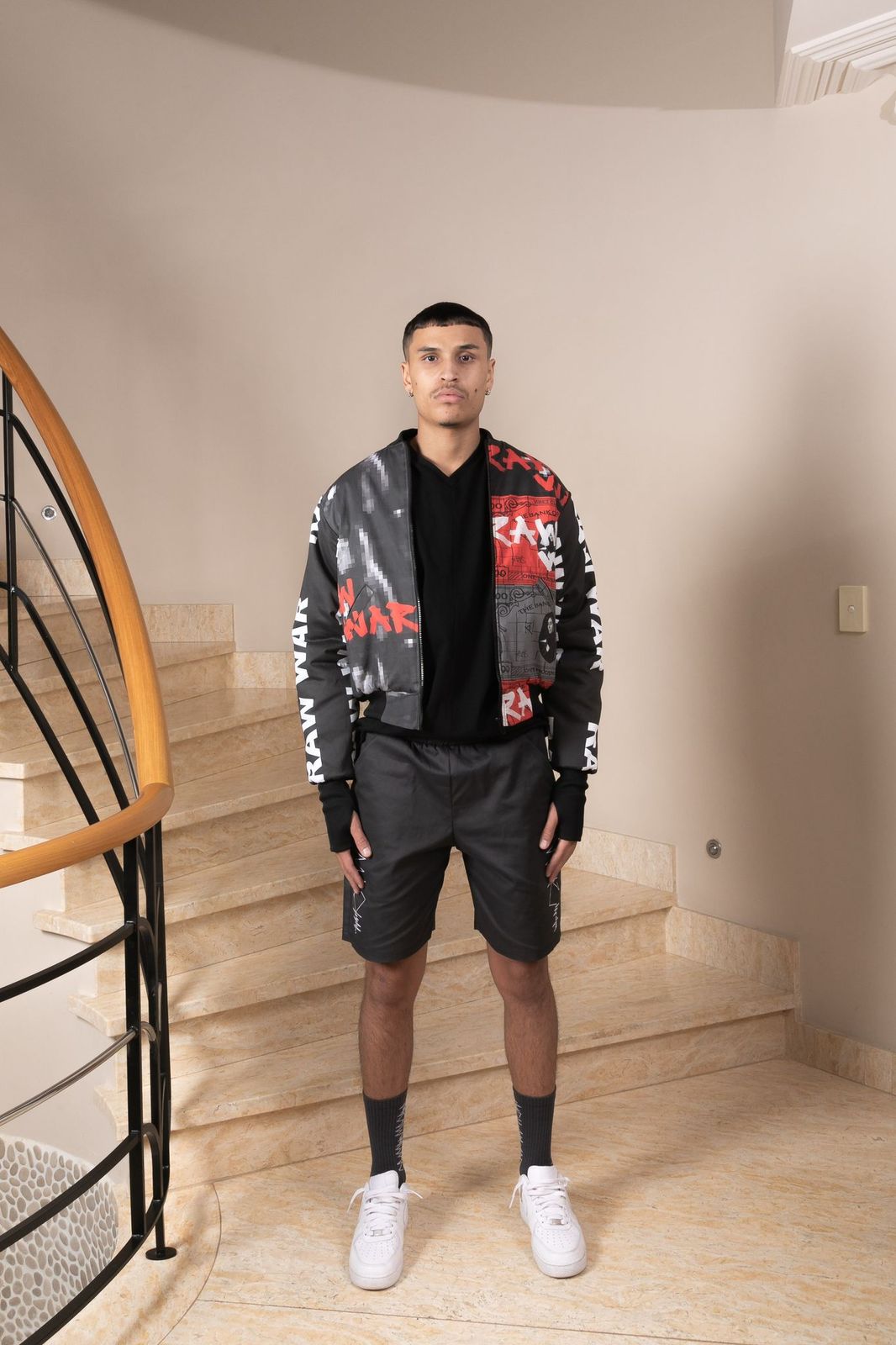 Australian brand RAW WAR RICHTER collection A visual element Raphael uses to reflect earthquakes is the Richter scale recordings of sharp lines that adorn the garments, both plain and inclusive of the brand’s strong name.