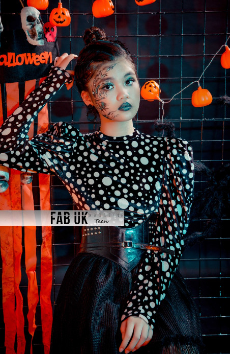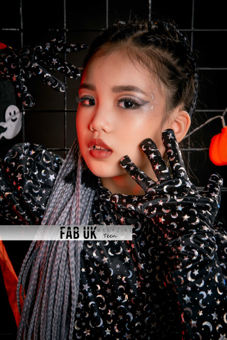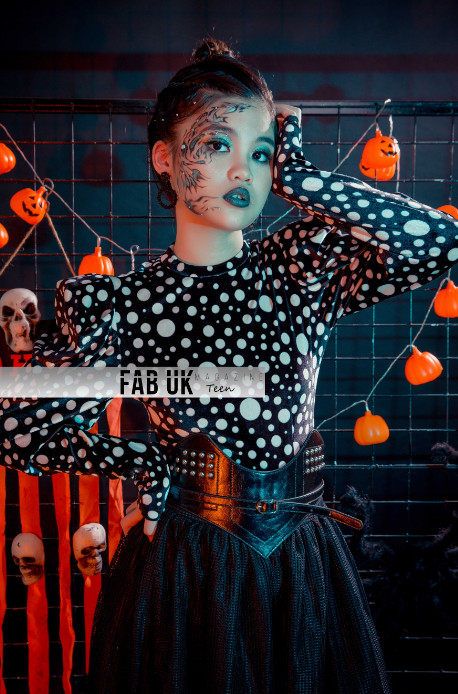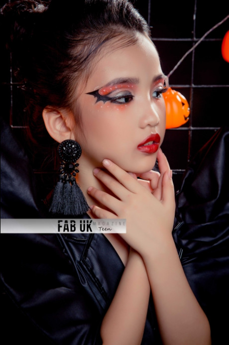 Spooky season means on point Halloween inspired photoshoots. Sister models Trang Anh and Bao Anh really went all out this year with their fashionable and holiday matched attire. Their stunning, goth-like make-up and fabulous outfits compliment their whole look and theme. Along with the impressive front appearance, the audience can clearly see the black, white-lined backdrop. Which is also decorated with decorations so scary it almost sends out chills!