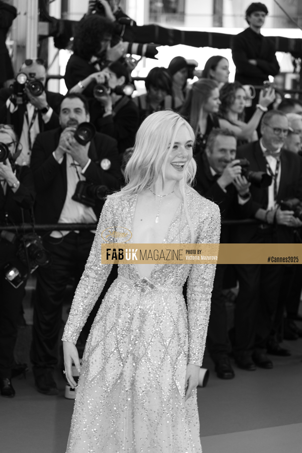 Elle Fanning attends the “The Mastermind” red carpet at the 78th annual Cannes Film Festival at Palais des Festivals on May 23, 2025 in Cannes, France. (Photo by Victoria Mazurova/Fabuk)