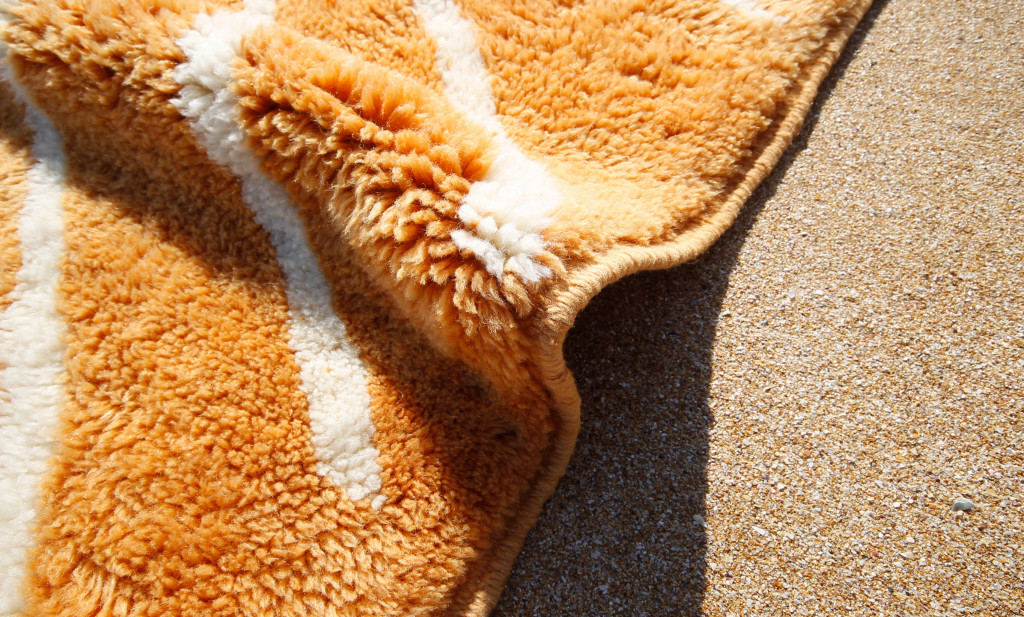 Each rug produced by the studio is entirely handcrafted, a process that takes several weeks from design to completion. Using premium Moroccan wool sourced from the Middle Atlas Mountains, the rugs feature a tight double-knot weave known for its durability and refined finish. The collections range from neutral-toned rugs designed for minimalist interiors to vibrant statement pieces such as the studio’s signature Vagues de Couleurs rug and the abstract Tegda runners, which have become hallmarks of the brand.