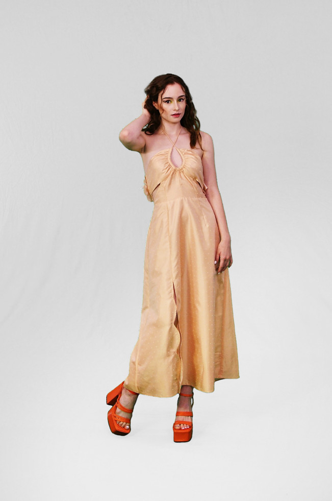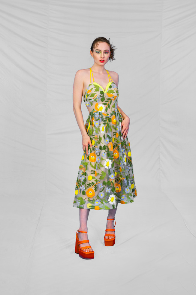 The SS23 collection draws inspiration from the designer’s personal experience and relationship with a close family member. The collection shares healing energy and is dedicated to the designer’s aunty, whose vigour for life and beauty in all forms was an inspiration.