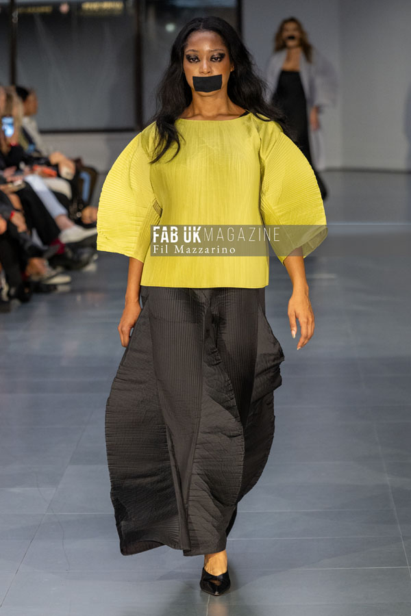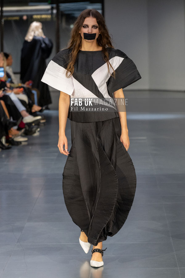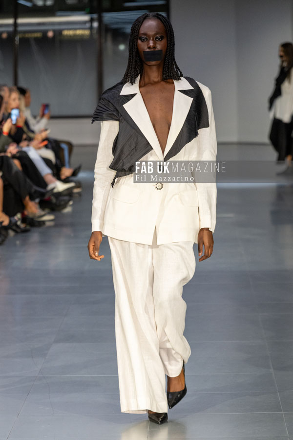 The UA in UK Fashion Show, part of the official London Fashion Week schedule, came to a striking finale with the runway presentation of Tamar Keburia. The Georgian-born, London-based designer captivated the audience with a collection that blended refined tailoring, sculptural silhouettes, and her signature bold elegance.