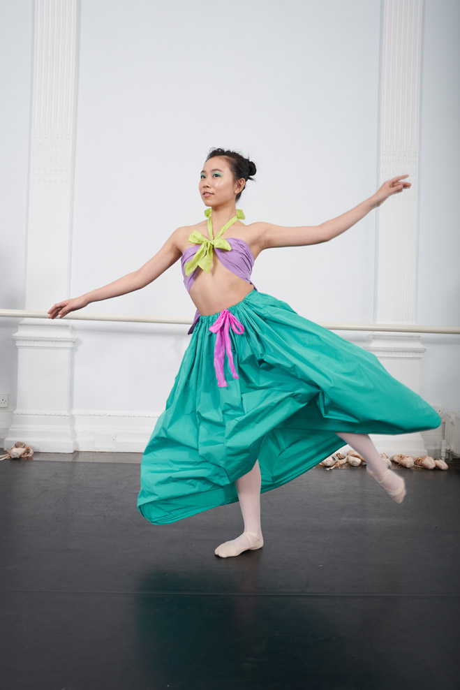 The colour palette features soft pastels associated with dance wear: lavender, salmon, pink, jade, yellow and turquoise.
