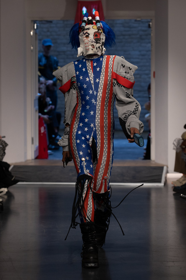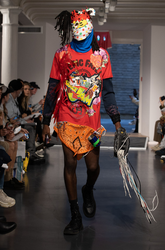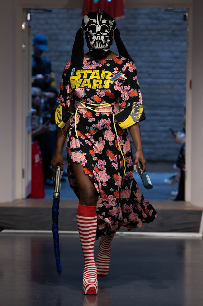 Conceived as a critique on capitalism and challenge to consumerism, and was heavily inspired by Katie Leasn’s Adbusters, founded in 1989 as “a global network of artists, activists, writers, pranksters, students, educators and entrepreneurs who want to advance the new social activist movement of the information age” Provocative, playful, pioneering – Dr Noki’s anti-fashion aesthetic is a visual rhetoric for today’s age, the mood of the times, and the voices of tomorrow’s generation.