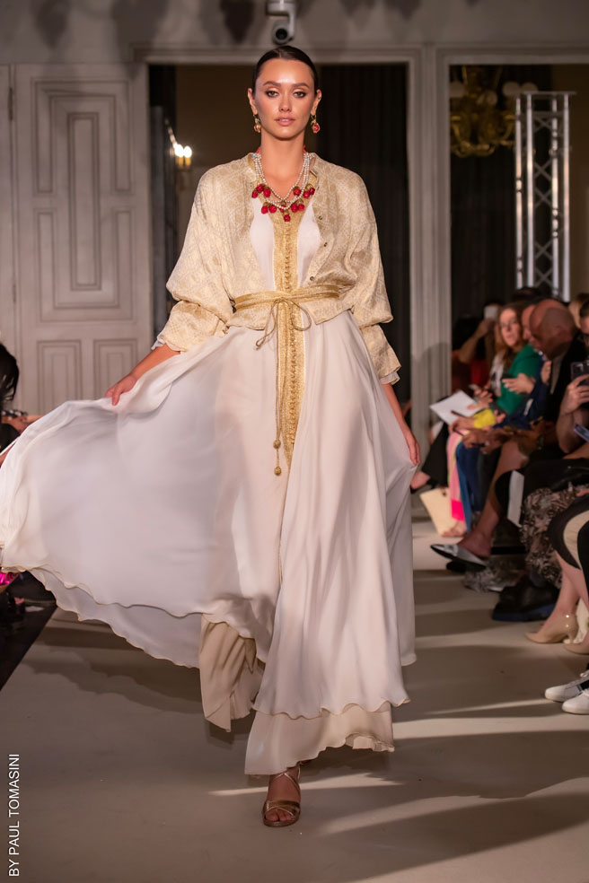 On July 4, 2023, the Oriental Fashion Show returned to Saint-Germain des Près for a new edition with a thousand is one colors. The Parisian spotlight shone on designers from the four corners of the globe: Lebanon, Morocco, Kazakhstan, Turkmenistan… Each of these designers was carefully selected on the basis of international standards, but also for the excellence of their work, which marvelously combines the richness of Oriental traditions and know-how.