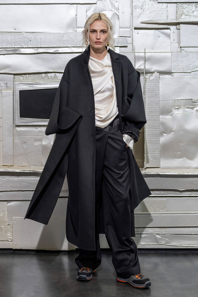 In an iconic LITKOVSKA manner, the brand presented a range of its classic designs – i.e. deconstructed masculine jackets and trousers – alongside elegant, fitted dresses.