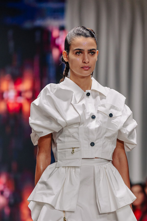 Blending Victorian curves with Chinese flat-pattern cutting, the collection played with space between body and fabric, producing deeply layered, emotional designs. It was a show that highlighted Tifaret’s mastery in balancing narrative depth with sartorial refinement.