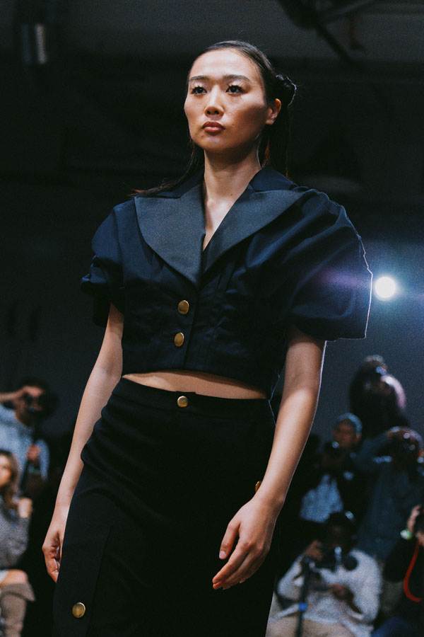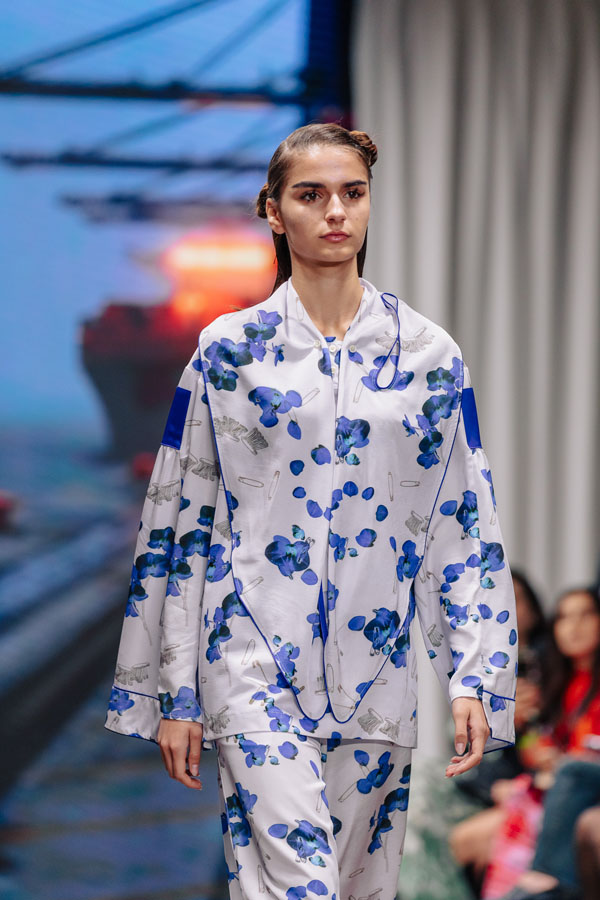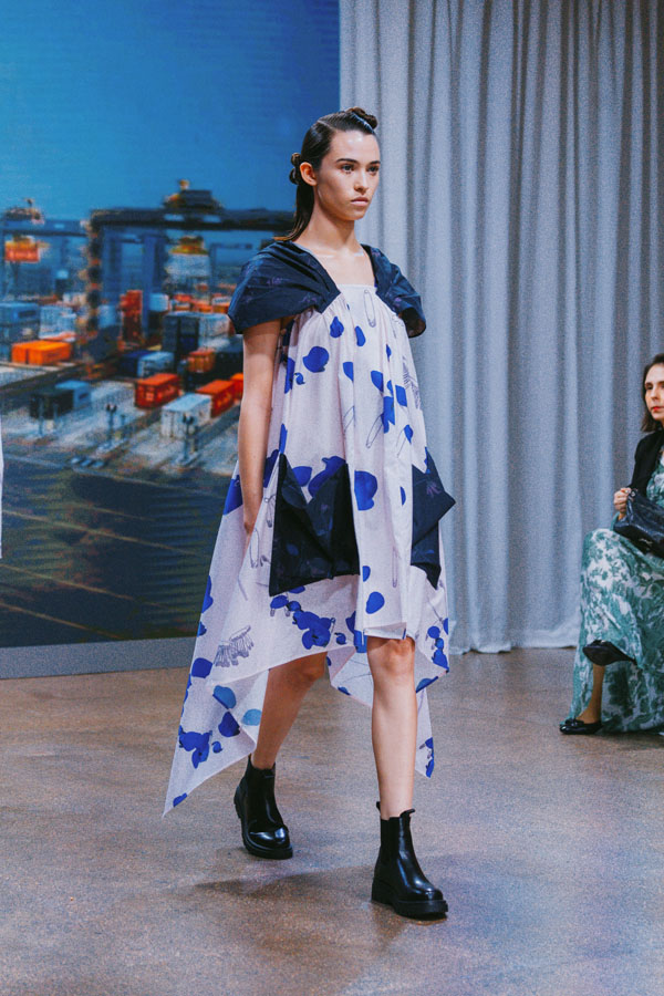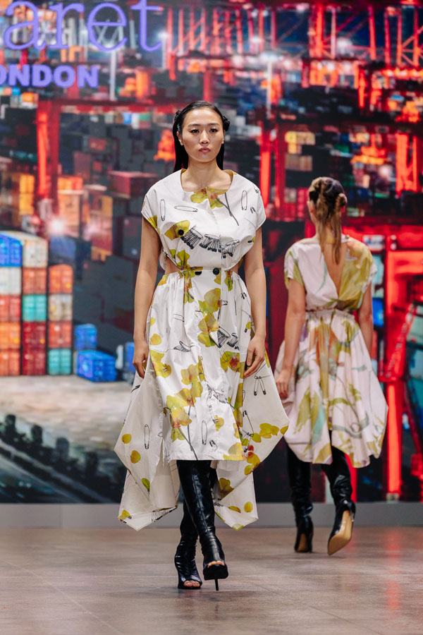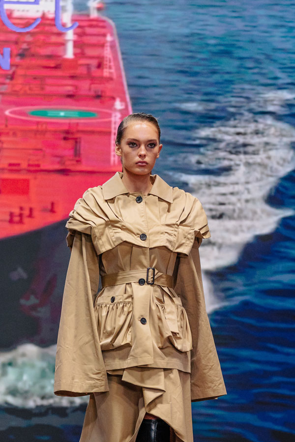 Designer Chiyue Dai drew inspiration from her own childhood, accompanying her mother one of the first women to work in international trade in 1990s Shanghai—to the docks. The port, with its stories of shipping routes, foreign goods, and whispers of modern piracy, became the foundation for a collection that bridges Shanghai and London, two global port cities shaped by exchange and contrast.