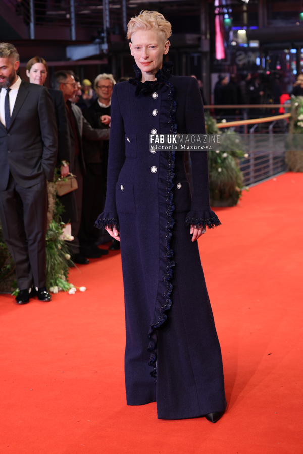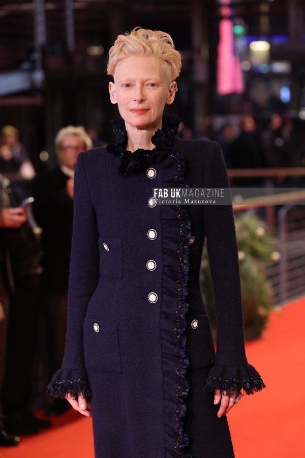 Tilda Swinton, actress, stands on the red carpet on the opening evening of The 75th Berlin International Film Festival for The film “The Light”. Photo: Victoria Mazurova via Fabuk)