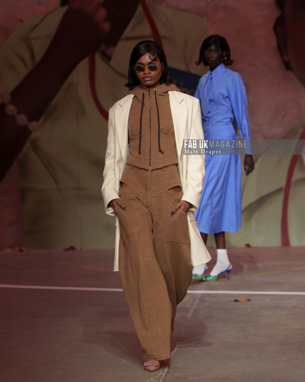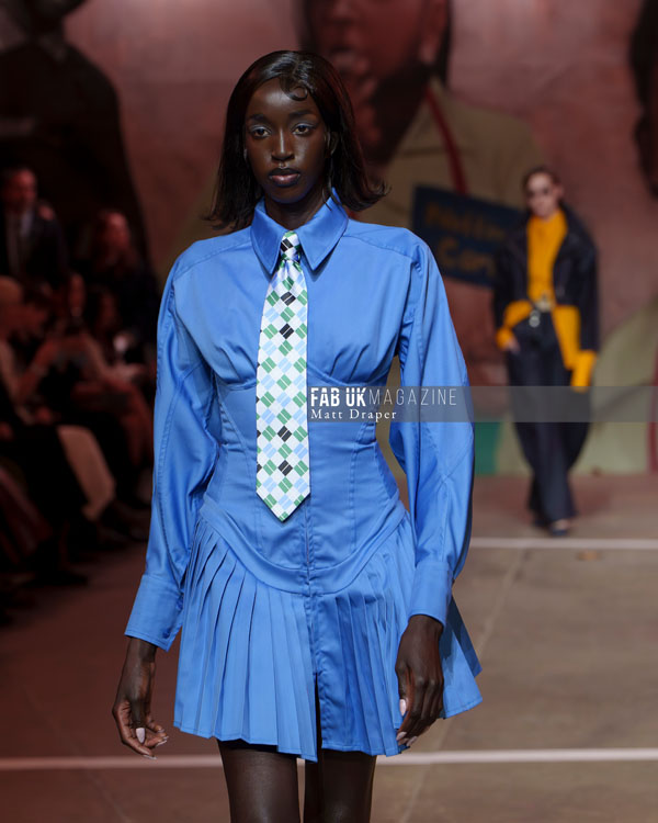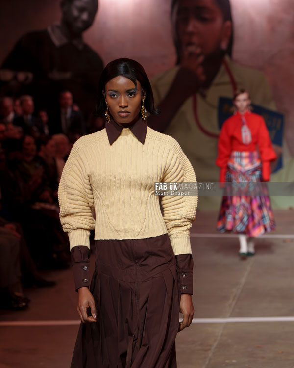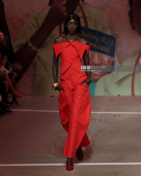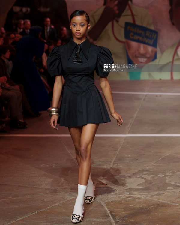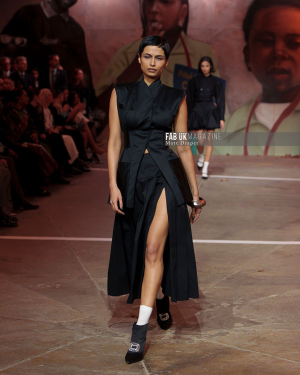 The show culminated in an electrifying performance, with a live band jamming as Little Simz delivered a powerful rap, and models danced freely across the catwalk. The infectious energy resonated deeply with the audience, many of whom were seen tapping their feet and bobbing their heads, wide grins reflecting the sheer joy of the moment. Coker’s show was a testament to London’s inherent energy, delivering it in spades and setting a high bar for the rest of London Fashion Week.