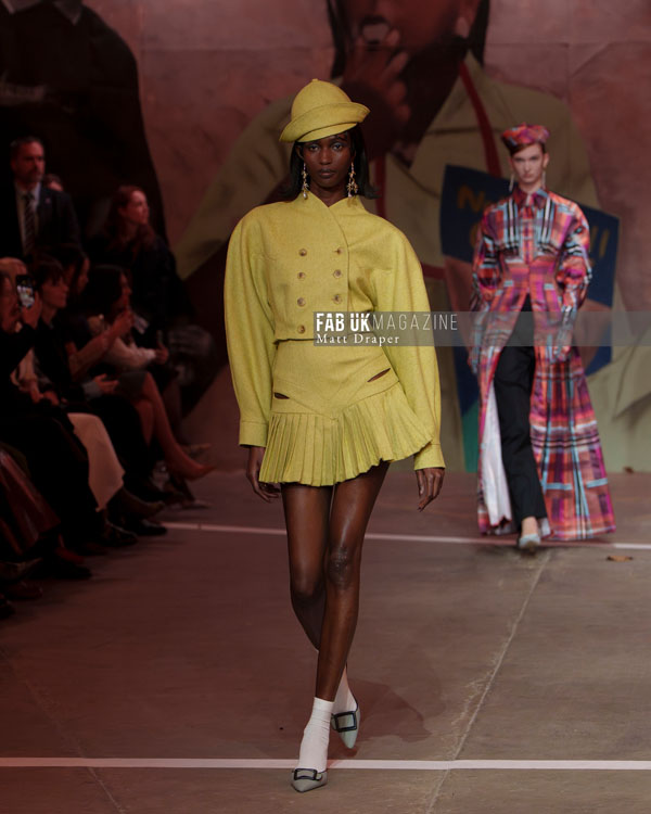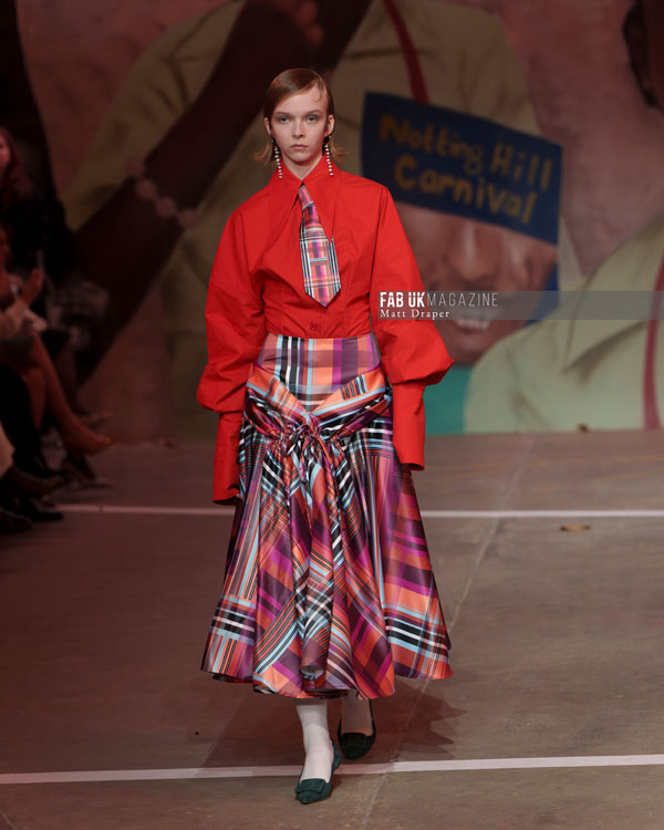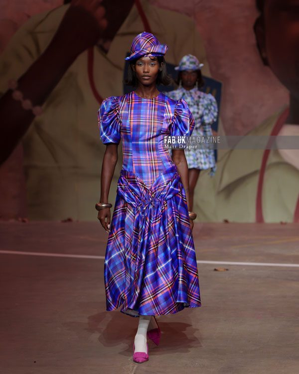 The collection itself was a bold declaration of color and form. Signature Tolu Coker cuts and silhouettes were reimagined in striking tomato reds, vibrant lime yellows, sophisticated blue houndstooth, and an array of dynamic check prints. A significant highlight was the debut of her collaboration with Topshop, with a preview of the capsule collection seamlessly integrated into her mainline presentation.
