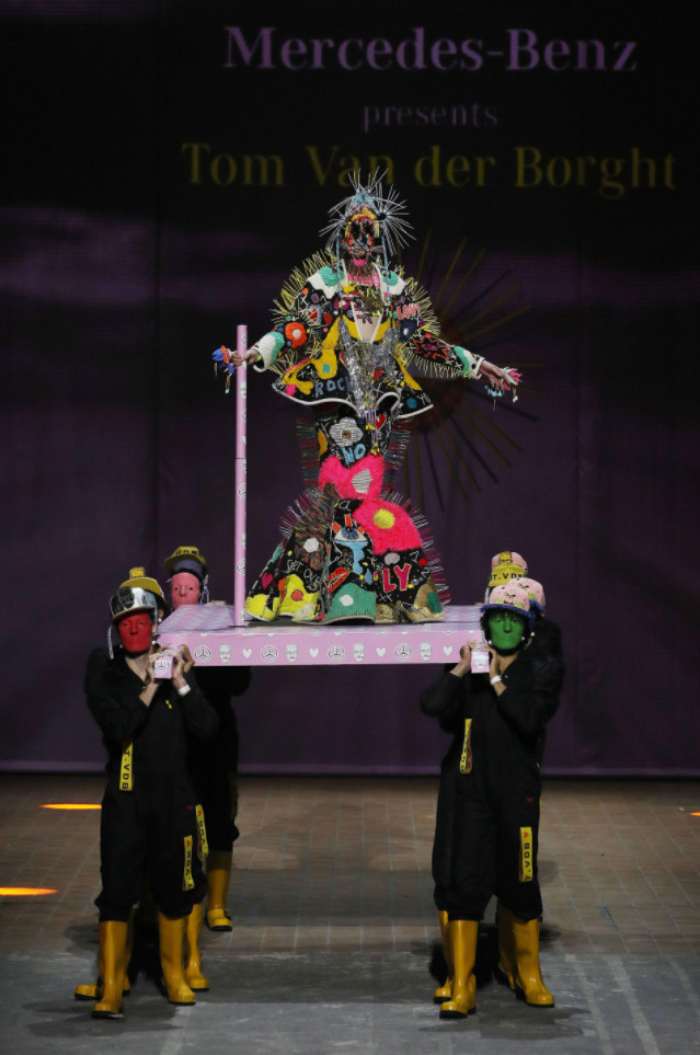 Tom continues to develop his powerful tribe through colourful, impactful and creative silhouettes, combining once again High-Tech Bricolage and haute couture savoir-faire.