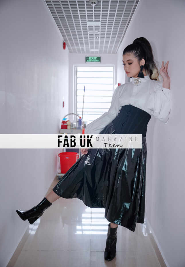 This street-style wear was made for the designer Trang Anh’s little sister Nguyen Ngoc Bao Anh- Little Miss Universe 2019 and even modeled by her.