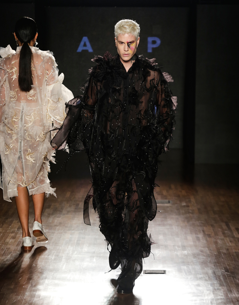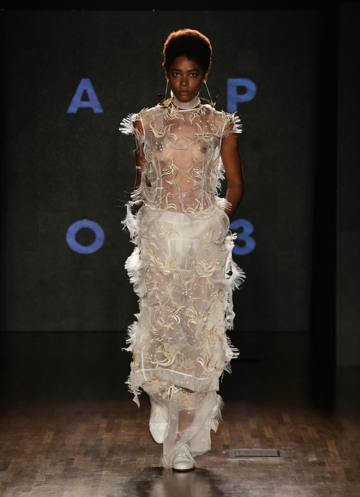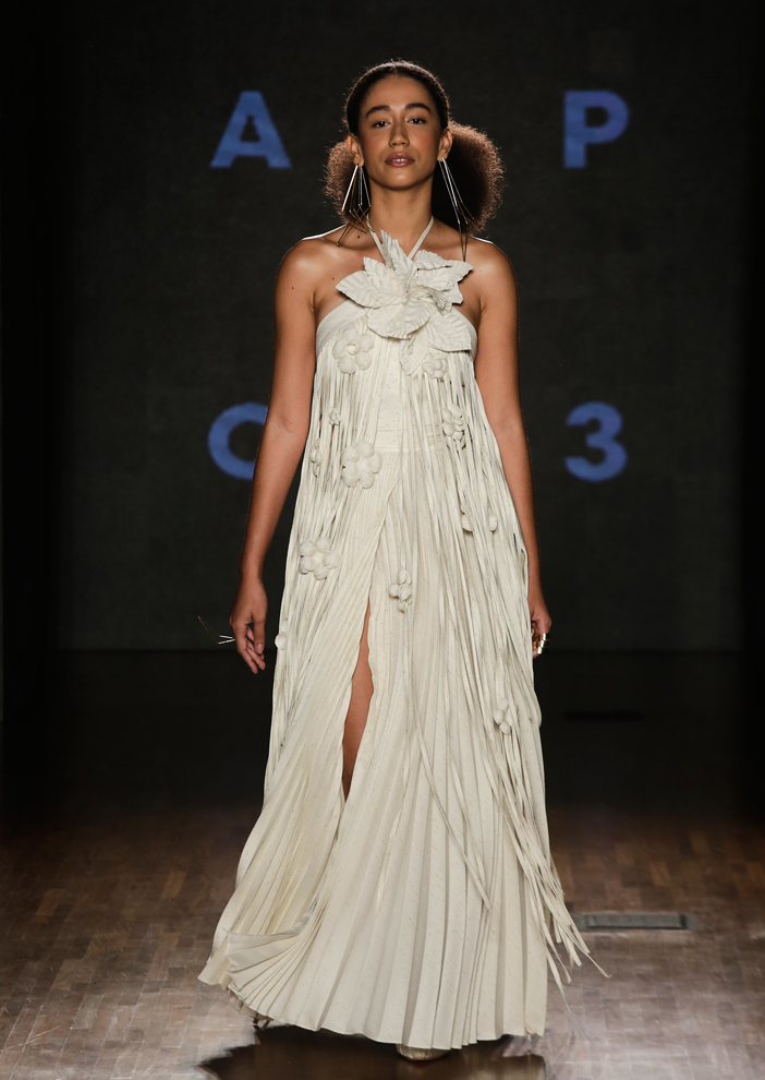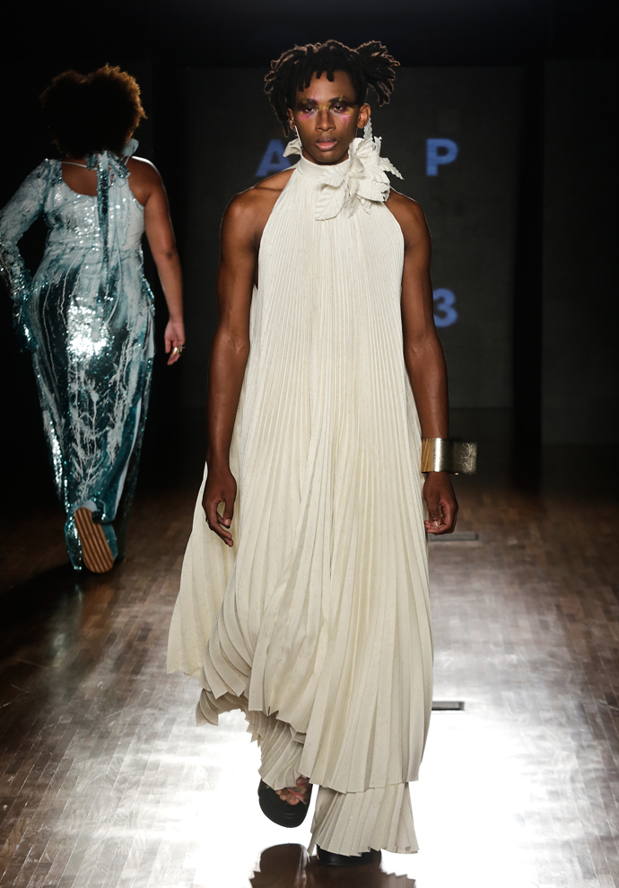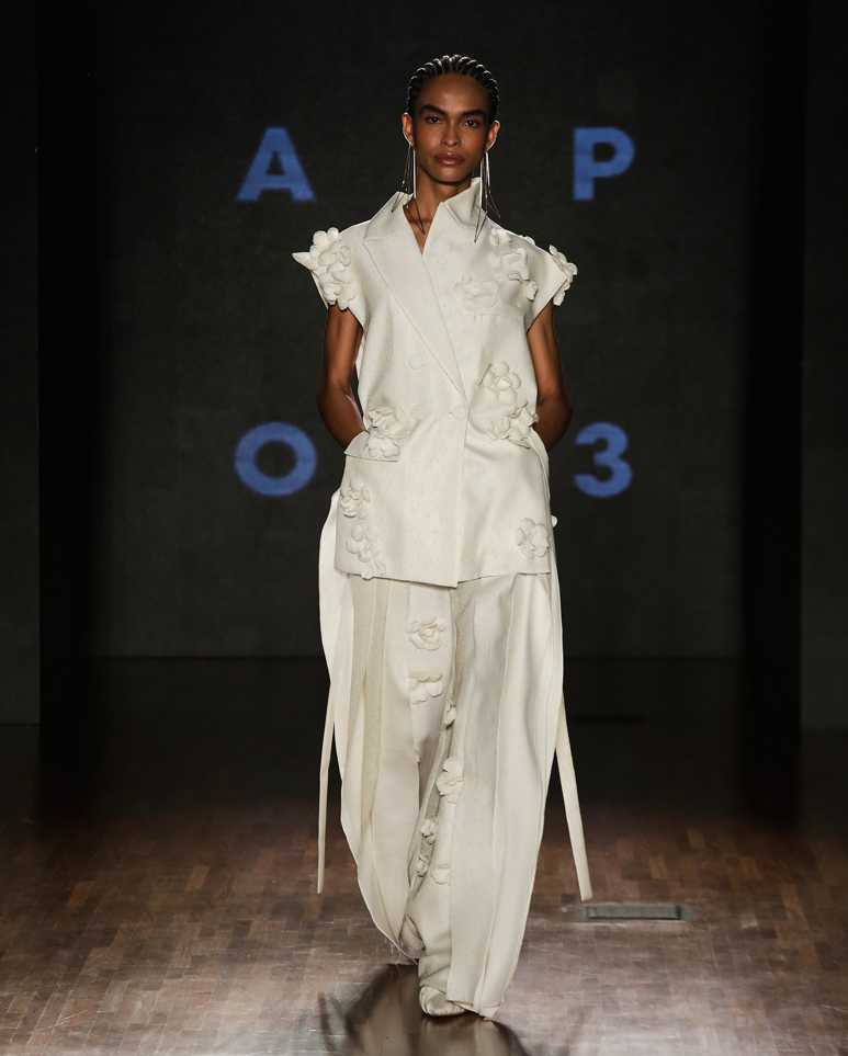 In the creation of this collection, Apartamento 03 pays homage to traditional atelier techniques, incorporating intricate pleats and transparencies. The essence of the brand, characterized by elegant and well-cut tailoring, remains intact while exploring the boundaries of artistic expression. The pursuit of authentic Brazilian art has driven the brand to challenge the artistic norms of its time. With “SILVA,” Luiz Cláudio, who shares the Silva surname, reinterprets and infuses the values cultivated by Estevão Silva, harnessing the power of the name to influence the design of each piece. The result is a striking, contemporary, and profoundly meaningful collection.