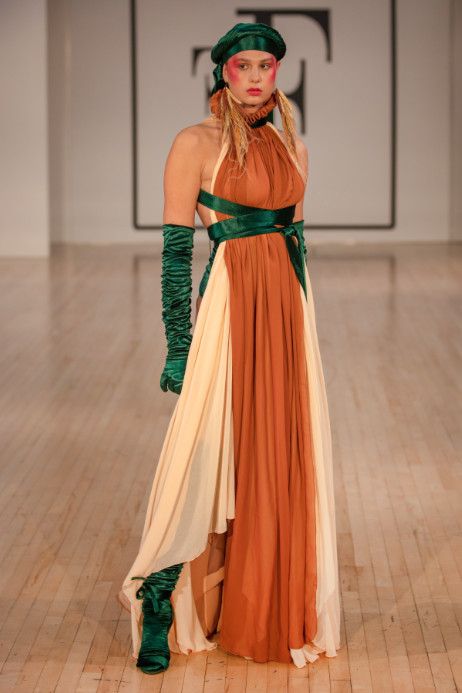 TuncerTonun participated in the Fashions Finest fashion show organized as part of the London Fashion Week with his collection ‘The Birth of The Goddess’ collection. At the fashion show held at the Congress Centre in London, the young fashion designer prepared a collection of green and earthy tones. In Tonun’s collection were 11 pieces of clothing were presented, the successful fashion designer also used vetch and dry trees. Water and bird sounds of nature were used as music in the show which drew a lot of attention to the nature-inspired collection. He stated that the models with turbans on their heads were used to create said an atmosphere relating to Rumi/Mevlana. Torun was deeply affected by the Amazon rainforest fires which inspired his successful collection and was also motivated by women and nature while drawing his designs, both creative and at the same time thought that it has the power to destroy which inspired this year theme, he said.