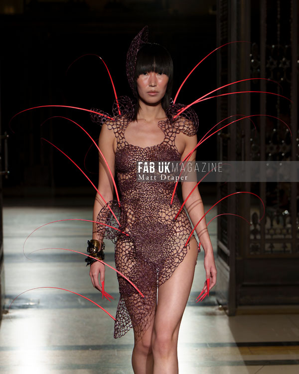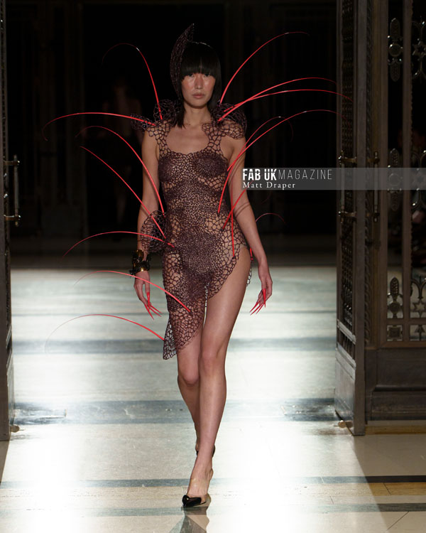 In the shadowy grandeur of Freemasons’ Hall, Karina Bond unveiled “The Midnight Sun,” a 21-look collection that blurred the line between sculpture and clothing, drawing dreams into dazzling physical form.
