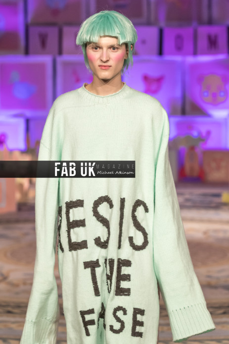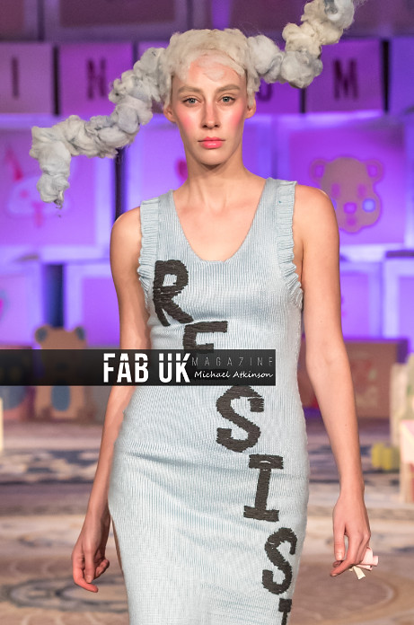 We are continuing our exploration of using waste nettles from Highgrove and have naturally dyed the nettle and incorporated it into the collection. It also forms the words RESIST on our finale dress which is specially created for the National Museum of Scotland.
