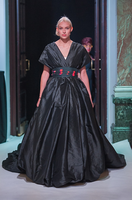 Haute couture garments created from silk and infused with Georgette and Chiffon were adorned with dragonflies, each one hand-embellished by specialist artisans in India. Like dragonflies, the garments seemed black and grey from a distance but the closer the models came, the more vibrant the colours appeared.