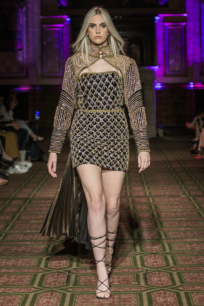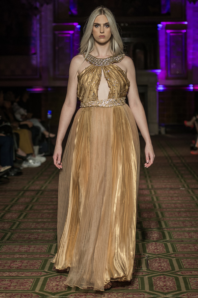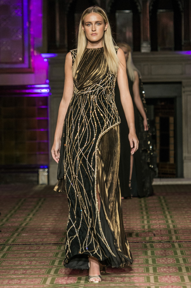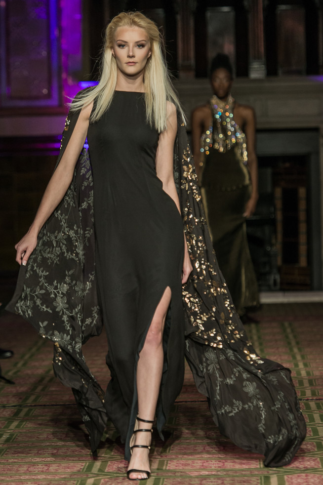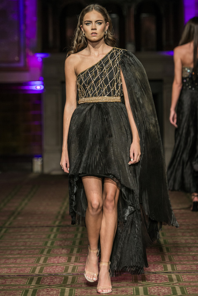 This couture collection primarily consists of gowns in full and knee length, as graced by Her Majesty on various occasions. Tailored capes to puffed sleeves dress primarily made as evening wear but can be elegantly carried at day events too.