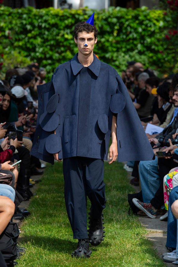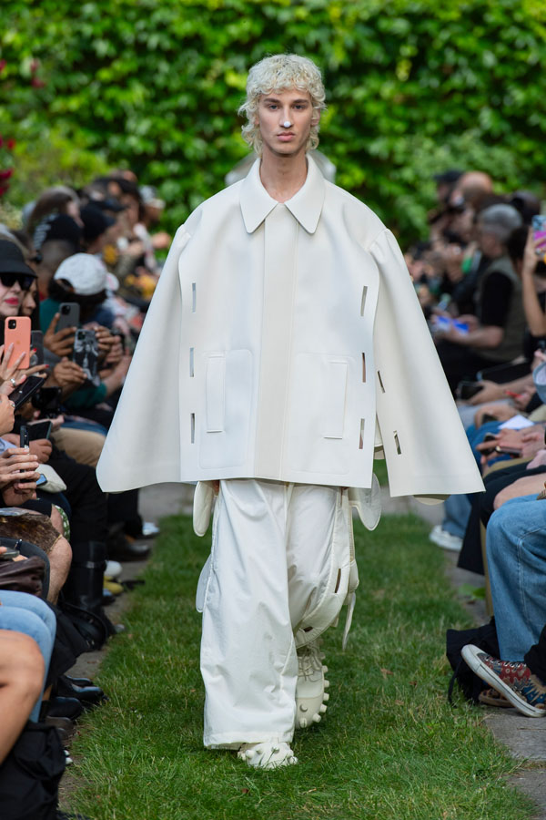 Coats ending in circles or arrows that can be left open or be cleverly slid inside slashes.
