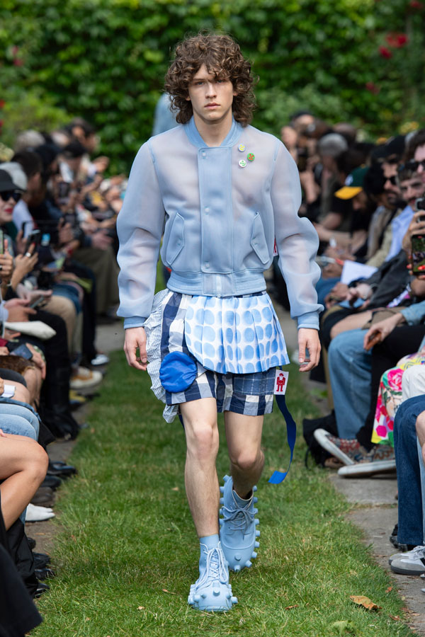 Open-sleeved shirts and jackets create a winking effect.