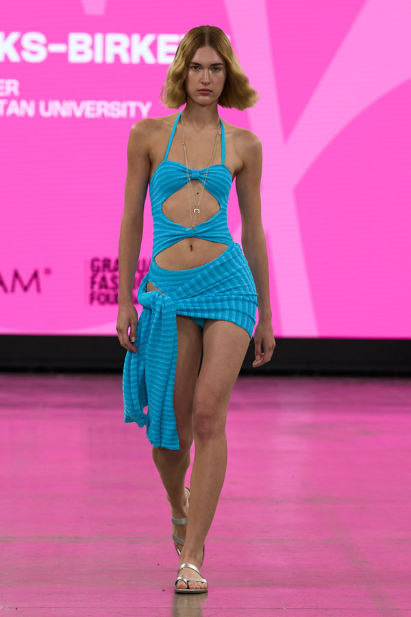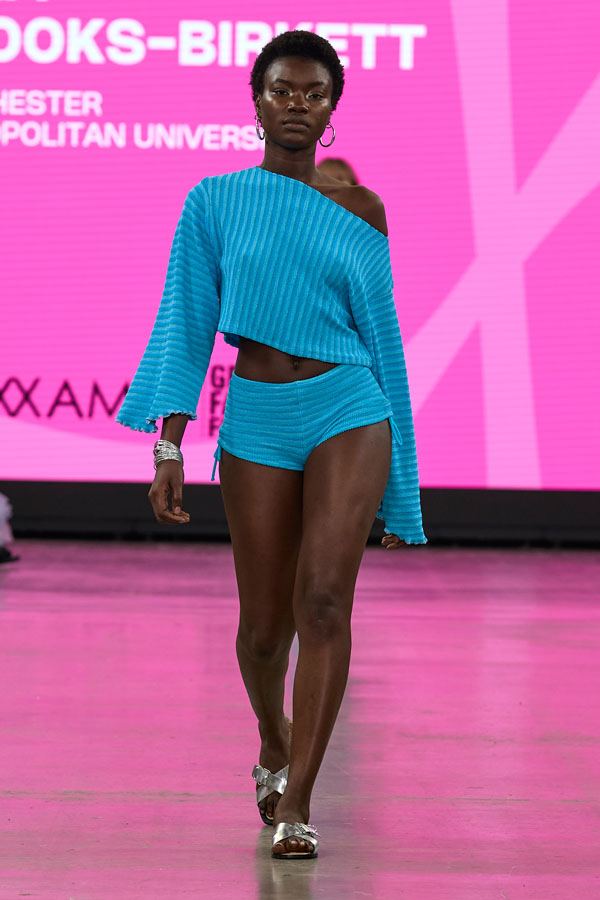 The competition, launched earlier this year, invited fashion students from across the UK and internationally to design a S/S 2026 womenswear capsule collection using MAXXAM® – the original 4-way stretch crinkle fabric invented by Moore and still in production today. The brief challenged students to produce timeless range of one size seamless multi-purpose athleisure wear for a weeks holiday that embraced the fabric’s history and included at least one piece of swimwear.