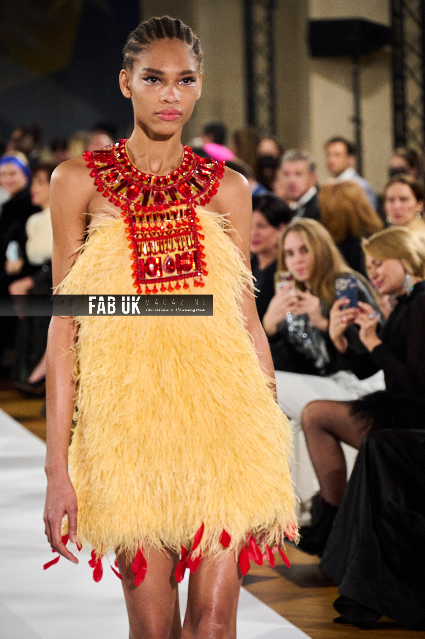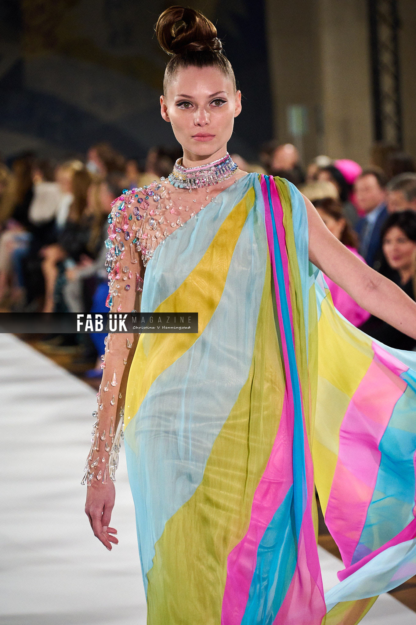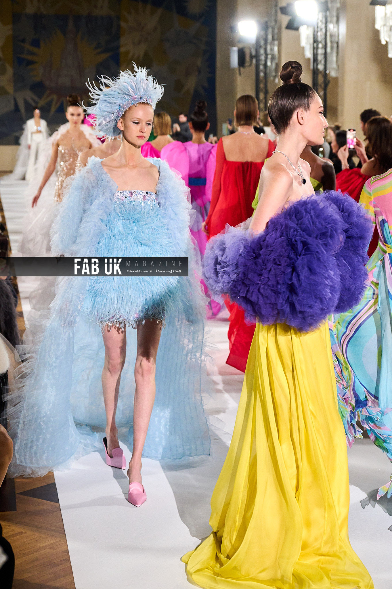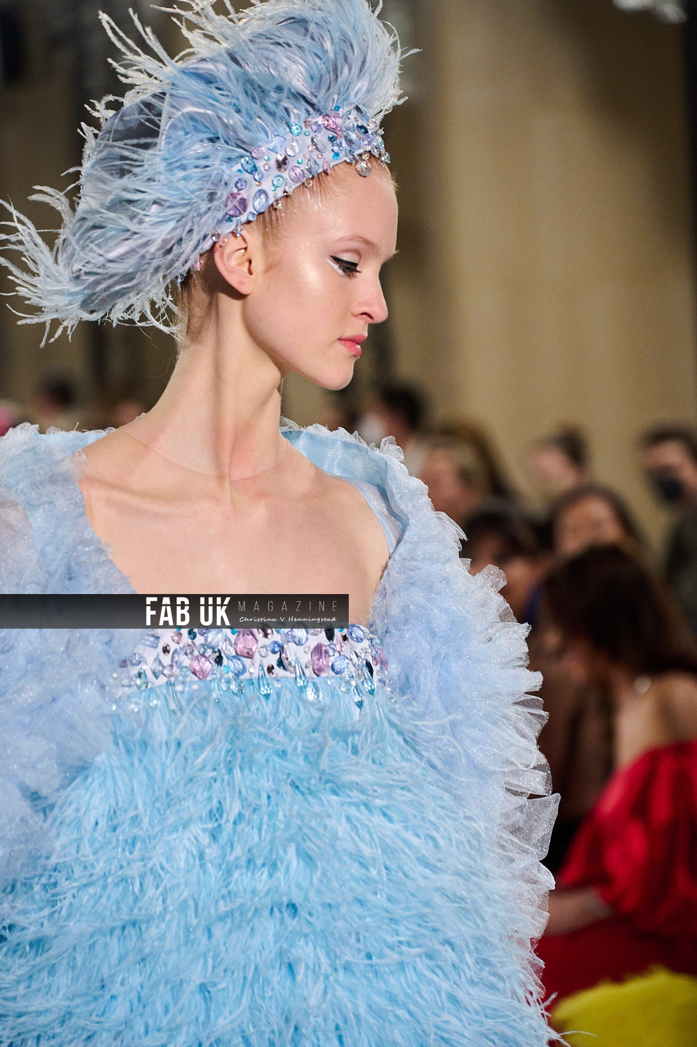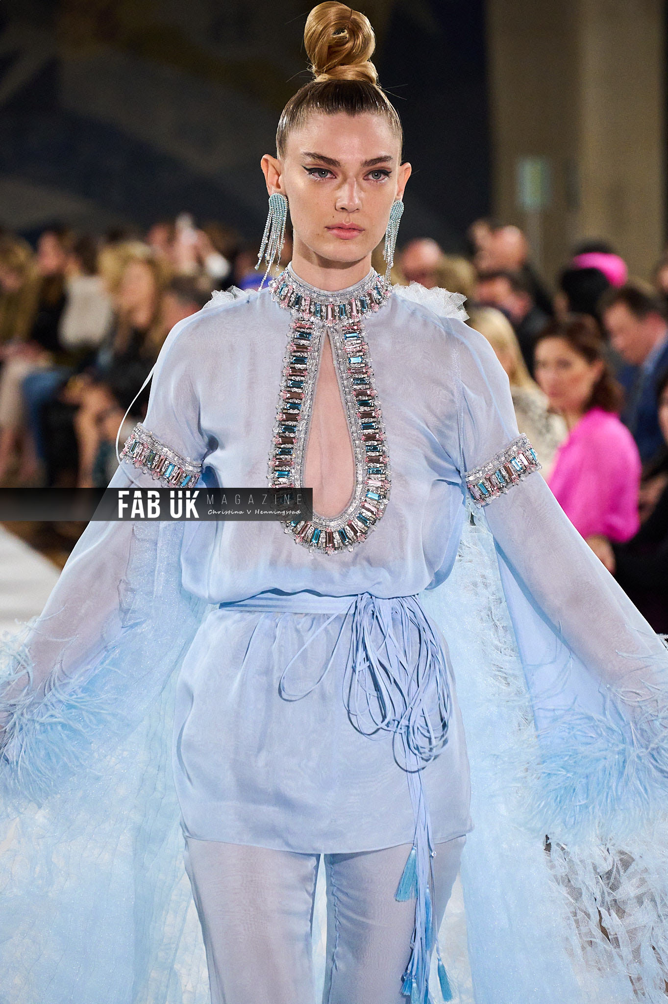 The Décor: Generous and vibrant. Stones and feathers, colored sequins, handmade elaborated embroideries. Innovative handcraft techniques spinning threads into remarkable plumages and crystals into glittering waves.
