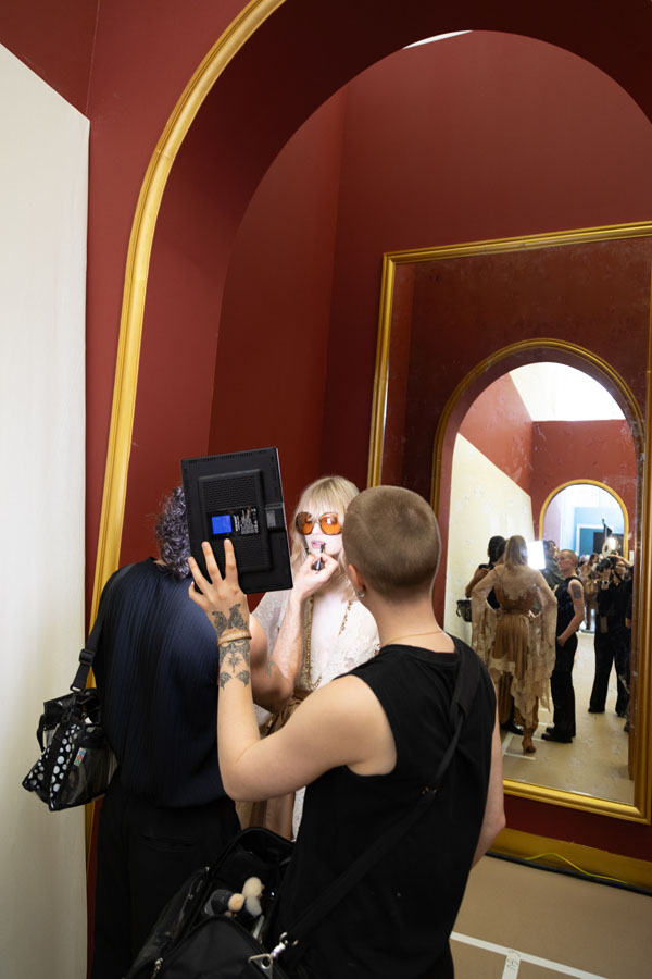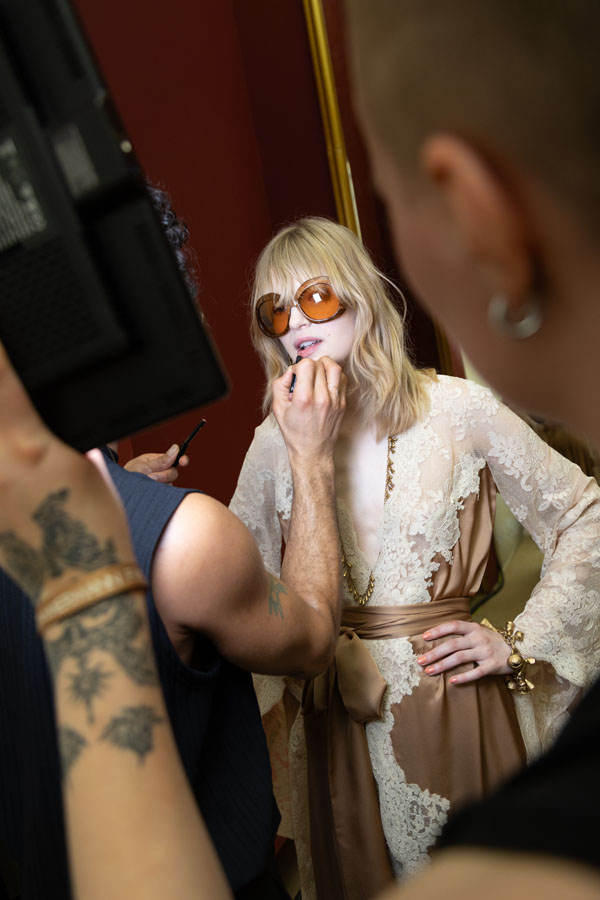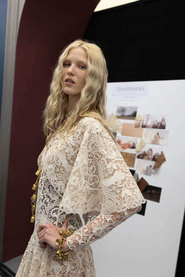 Adding to the allure, photographer Olga Gasnier documented the intimate moments behind the curtain, capturing the essence of the collection’s intricate details and the electric energy of the show. Her backstage photography offers an exclusive glimpse into the craftsmanship, creativity, and emotion that define Zimmermann’s Hypnotic collection.